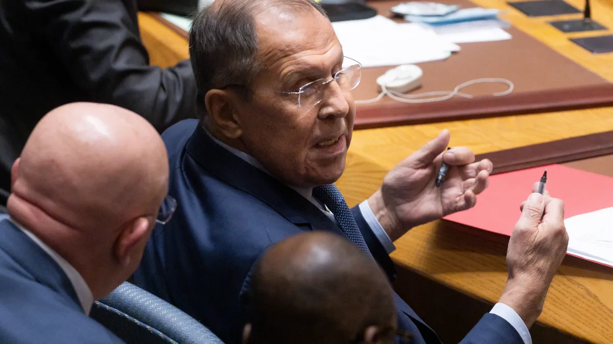 Выступавший после него Сергей Лавров, в свою очередь, повторил стандартные тезисы, регулярно транслируемые российской стороной: обвинил западные страны в нарушении Устава ООН и угрозе глобального конфликта, сообщил, что США и их союзники несут ответственность за текущую войну в Украине, отверг условие Зеленского о восстановлении территориальной целостности Украины в границах 1991 года. Также Лавров выразил готовность к мирным переговорам, предложив США повлиять на Украину и отменить декрет Зеленского об отказе от переговоров с Россией.