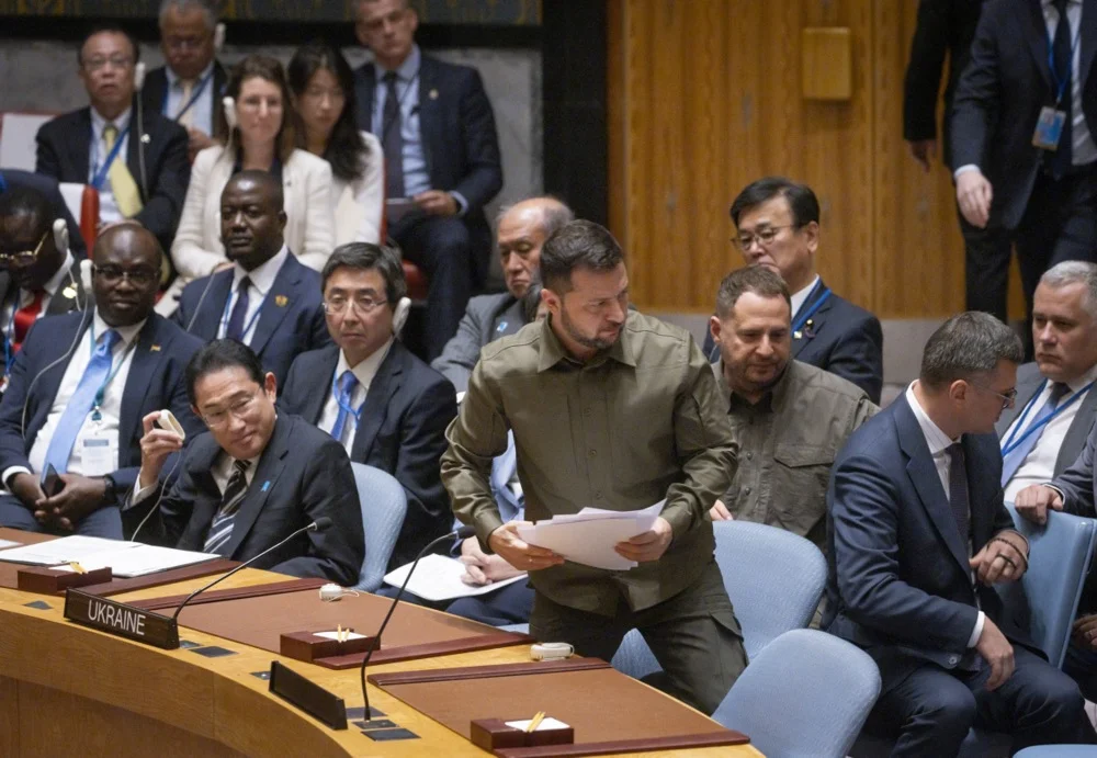 Несмотря на требования Небензи, Зеленский всё-таки выступил первым. В своей речи он сделал акцент на том, что ООН находится в тупике — организация не состоянии справляться с международными конфликтами: «Право вето не должно быть оружием для тех, кто одержим ненавистью». Главная проблема, по мнению президента Украины, — в самом устройстве Совбеза, любой участник которого при помощи права вето может блокировать принятие важнейших решений, например в отношении войны в Украине.
