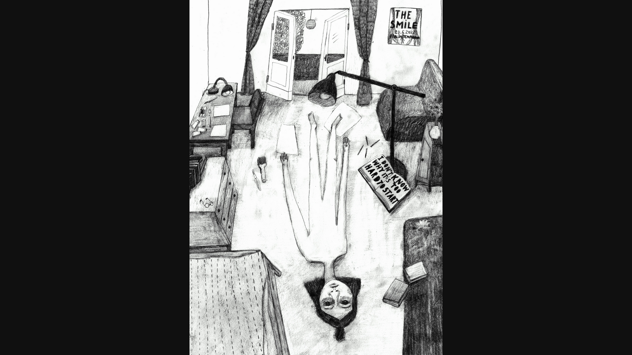 "Свинцовое одеяло мыслей". Цветная картинка про войну, любовь, сложные чувства, горе и улетающую из России девочку с чемоданом и книжками. Для меня это был выход из тёмной зоны, потому что первые недели в эмиграции – это и, как ни странно, эйфория от нового места, и чувство безопасности, но при этом и какая-то тоска страшная. Ощущение конца и начала одновременно.