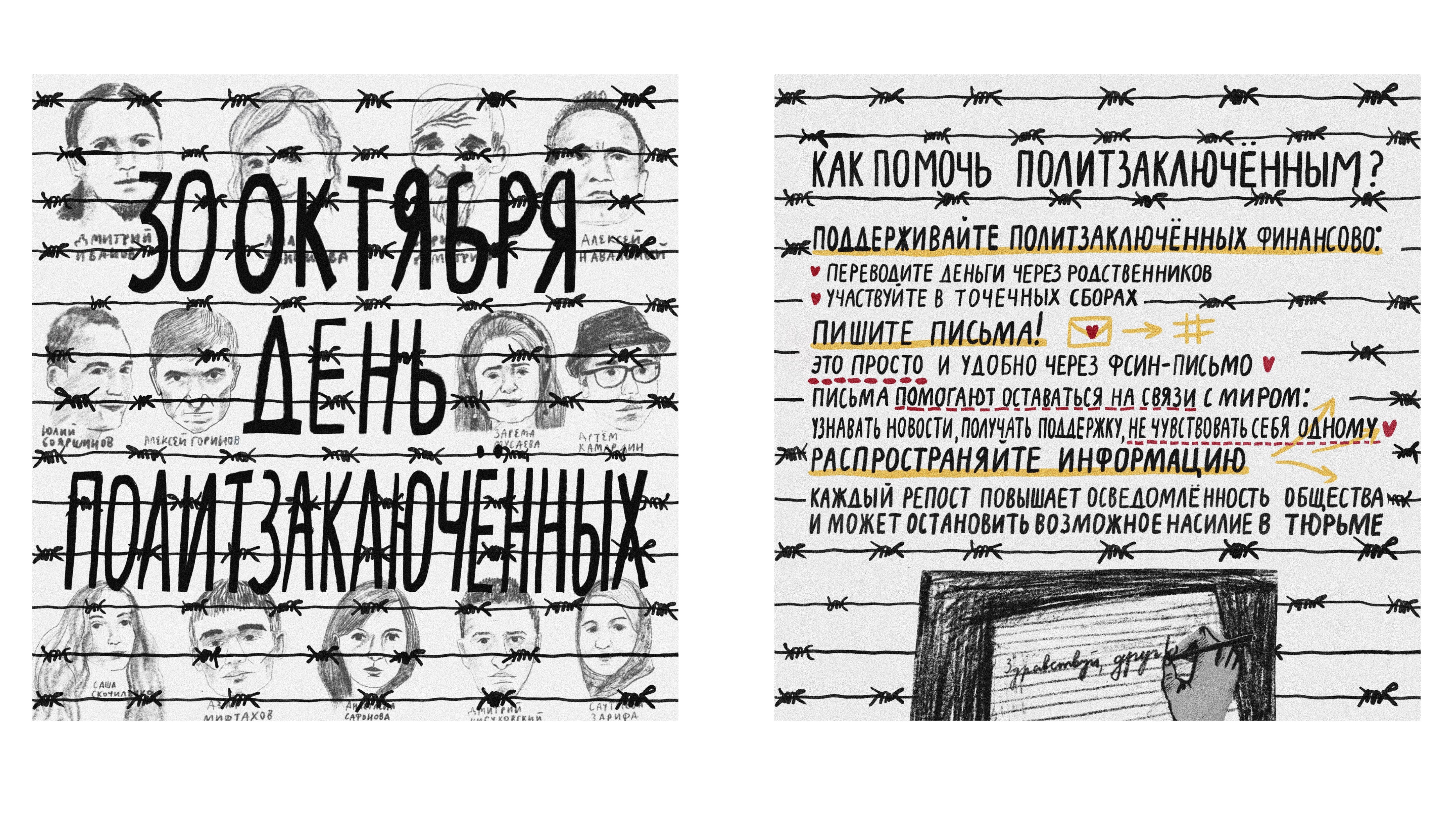 В прошлом, 2022 году, на следующий день после "Возвращения имён" – в День политзаключенных в России мы выпустили такой материал. Несмотря на то что идёт война, про политзаключённых нельзя забывать, по возможности надо писать им письма, переводить деньги семьям, на адвокатскую помощь и, главное, не молчать и распространять информацию.
