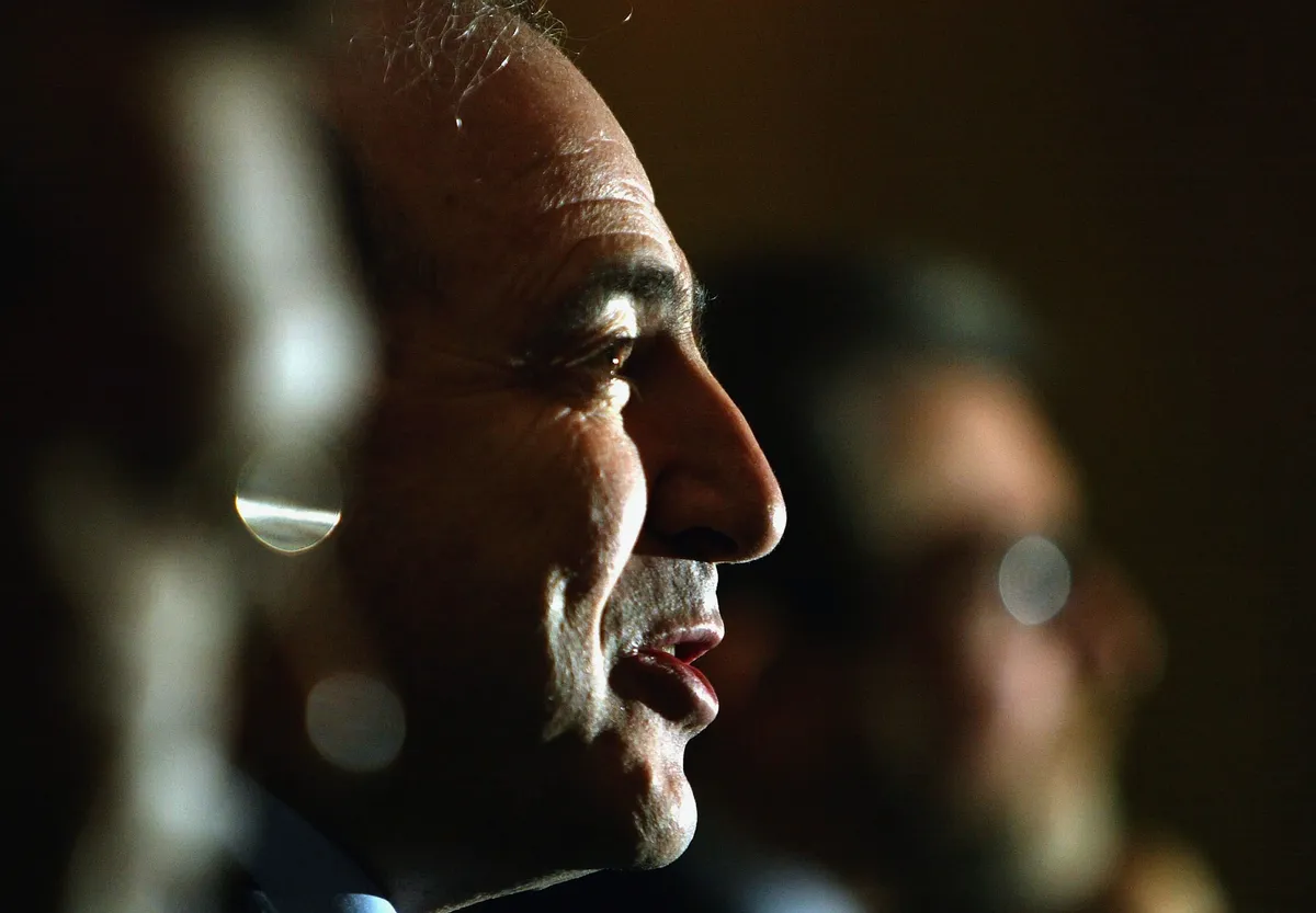 Юлий Дубов и Борис Березовский на пресс-конференции после прекращения дела об экстрадиции Юлия Дубова в отеле Westbury 7 октября 2003 года в Лондоне. Фото: Bruno Vincent/Getty Images