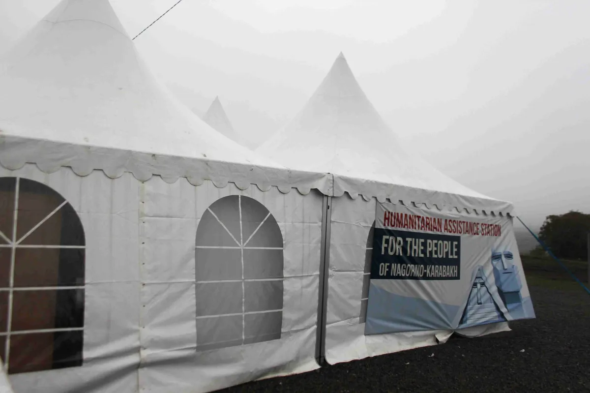 В 25 километрах от Гориса, на дороге около села Корнидзор стоят белые шатры «Красного креста». Сюда первым делом направляются те, кто едет из Степанакерта. Здесь беженцев регистрируют и обеспечивают вещами первой необходимости. Они безостановочно подходят к волонтерам, сидящим за компьютерами и подают свои документы. Им помогают найти родственников, узнать их адреса и номера телефонов. Кроме того, здесь же можно получить еду, воду, чай, сладости и теплую одежду. Все то, чего так не хватало жителям Нагорного Карабаха во время блокады.