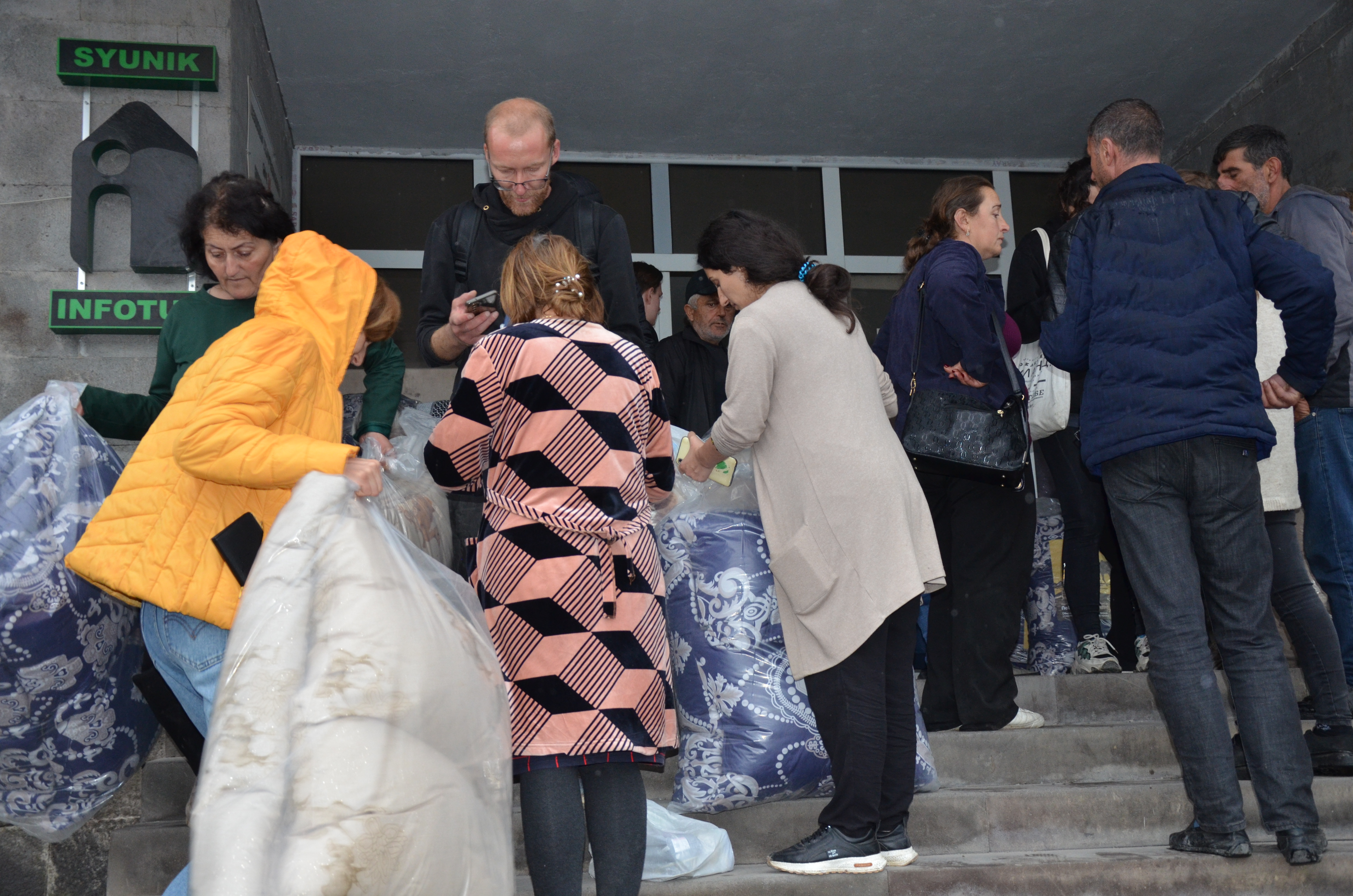 Большинство людей, покидающих Карабах, останавливаются в городе Горис в приграничной с Азербайджаном Сюникской области Армении. Там открыт центр приёма беженцев.