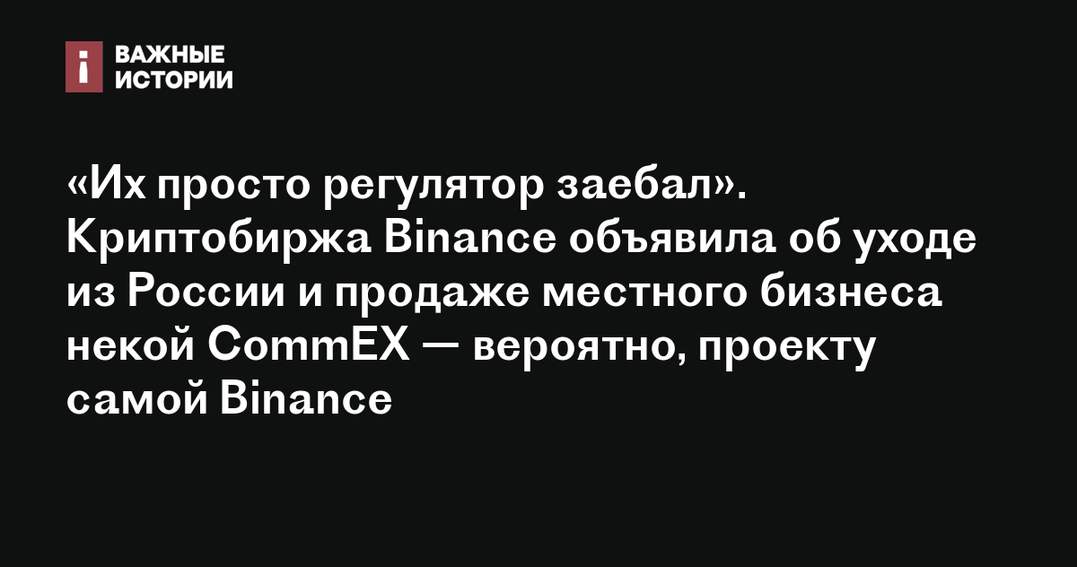 «Их просто регулятор заебал». Криптобиржа Binance объявила об уходе из России и продаже местного бизнеса некой CommEX — вероятно, проекту самой Binance