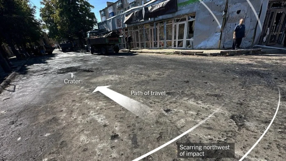 Скриншот из расследования «Нью-Йорк Таймс» о взрыве ракеты на рынке в Константиновке. Источник: The New York Times