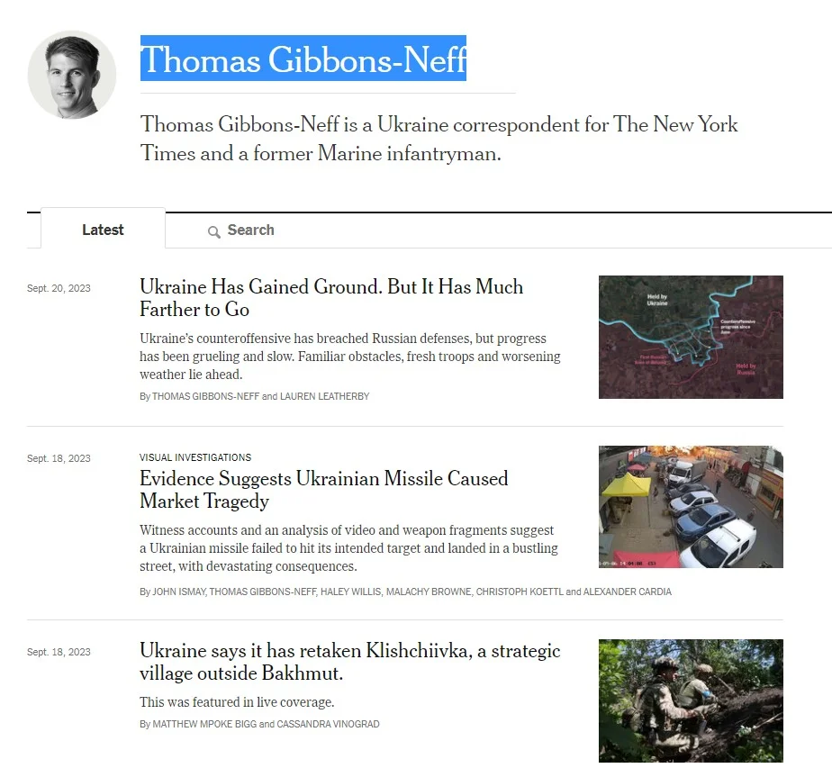 Замечу, что и после нашумевшей публикации корреспондент NYT продолжает работу и на днях написал статью о ходе украинского контрнаступления и больших потерях, которые несут ВСУ.