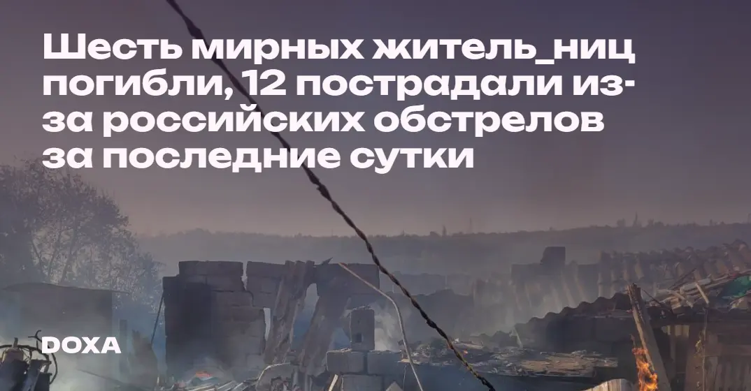 Шесть мирных житель_ниц погибли, 12 пострадали из-за российских обстрелов за последние сутки