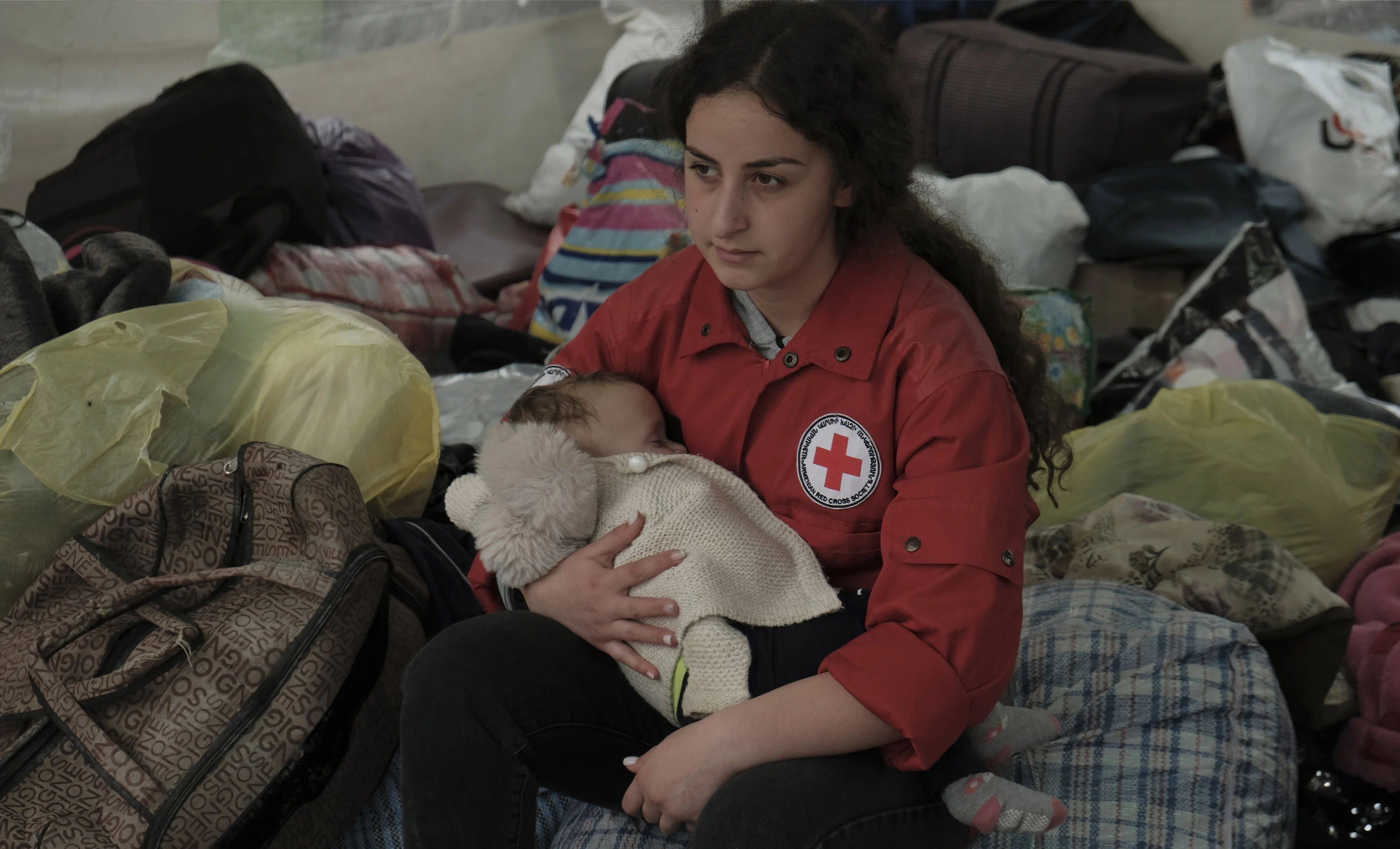 Корреспондент «Медиазоны» помог женщине донести вещи, она спросила: «Вы волонтер?» — «Нет, я журналист». В этот момент проходивший мимо сотрудник Красного Креста бросил: «Мы все здесь помогаем».
