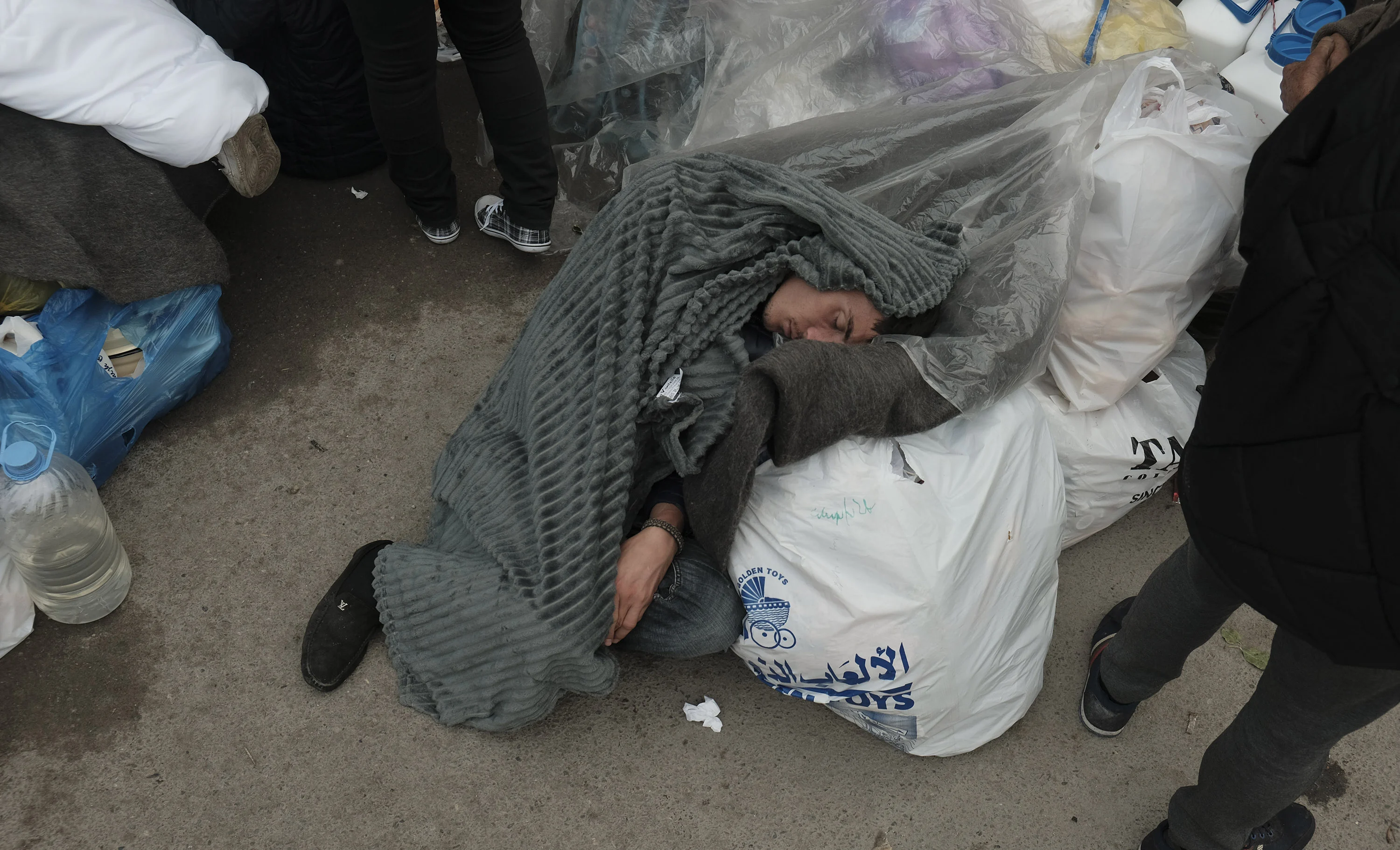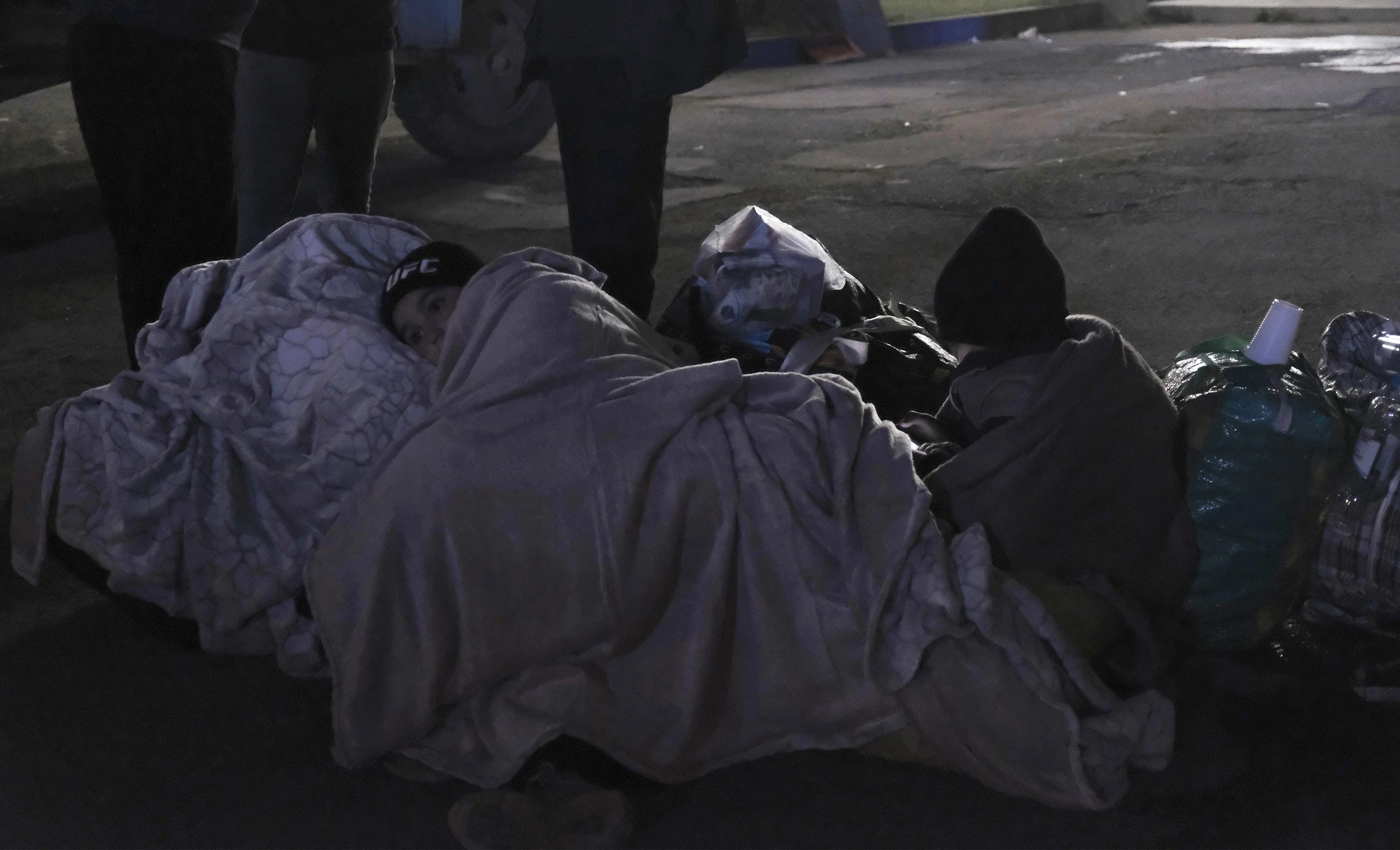 Возможности разместить всех беженцев под крышей не было, и многие ночевали на площади — под одеялами, которые раздавали волонтеры.