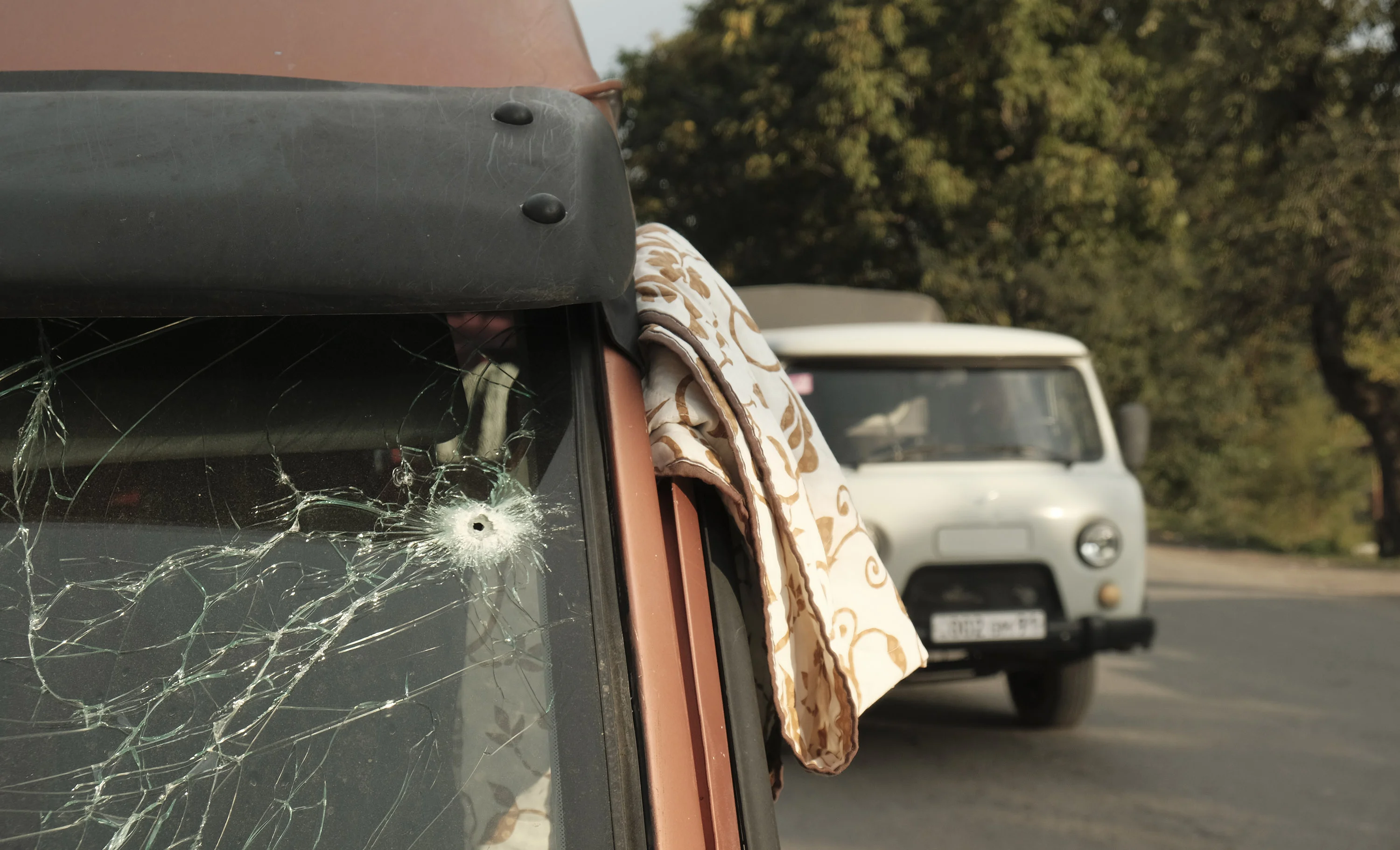Многие машины из Нагорного Карабаха имели заметные свежие повреждения, на некоторых были видны следы пуль.