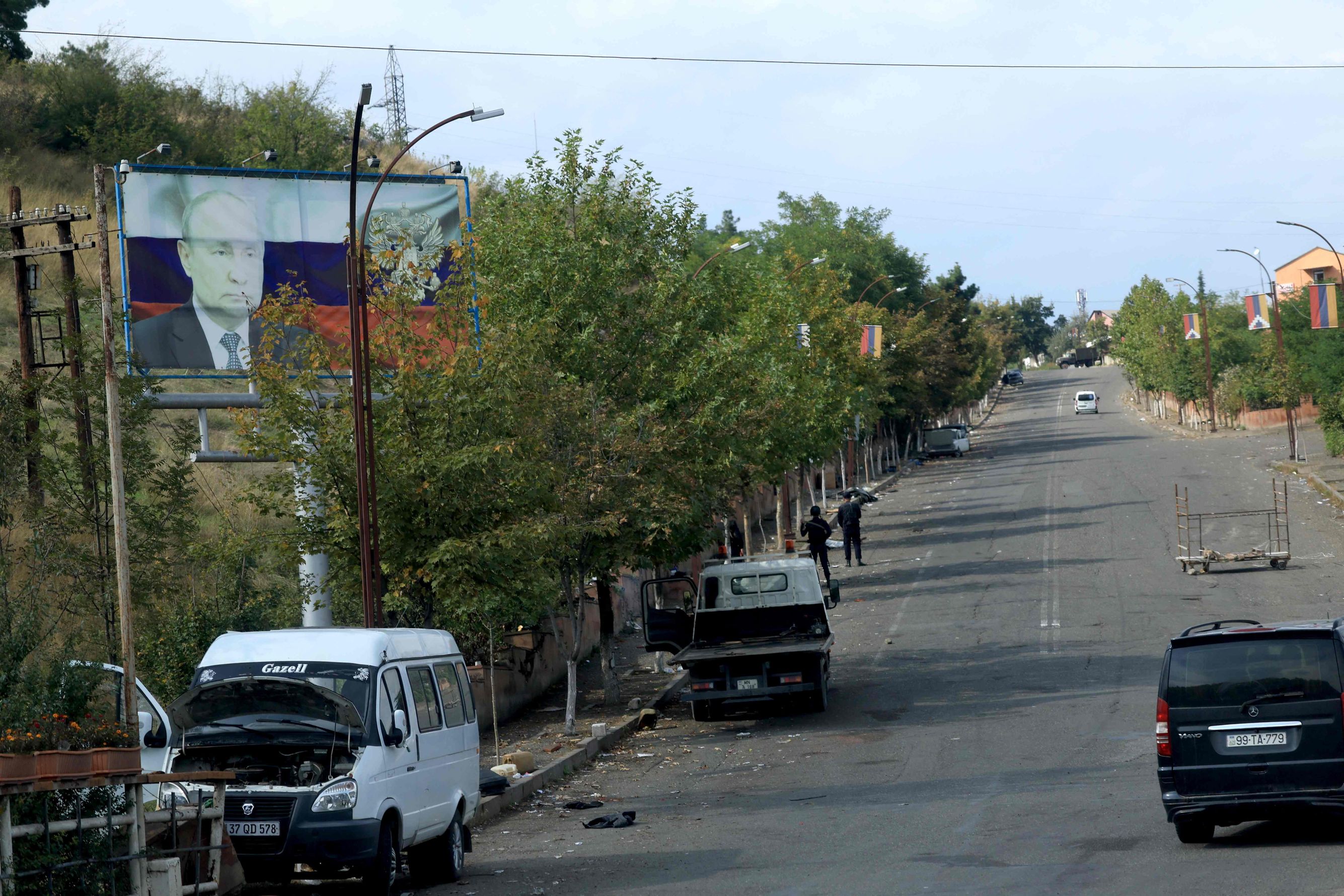 Нагорный Карабах — после того, как его взяла под контроль армия Азербайджана, — покинули почти все армяне. Миссия ООН, побывавшая в регионе впервые за 30 лет, сообщила, что там осталось не более тысячи армян. Раньше население Карабаха оценивали примерно в 145 тысяч человек. Премьер-министр Армении Никол Пашинян называл происходящее в Карабахе «этнической чисткой». Вот как выглядит Степанакерт и дороги, ведущие к городу, — на них нет почти никого, кроме азербайджанских полицейских.