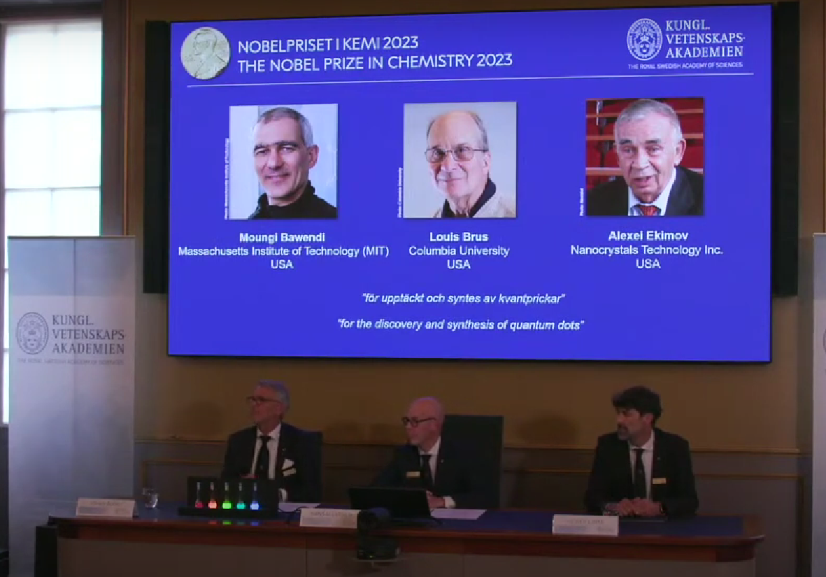 Детали. Нобелевскую премию по химии в среду вручили трем ученым Алексею Екимову, Мунги Бавенди и Луису Брюсу за открытие и исследование полупроводниковых квантовых точек, которые широко применяются при создании светодиодных телевизоров, солнечных панелей и в медицине.
