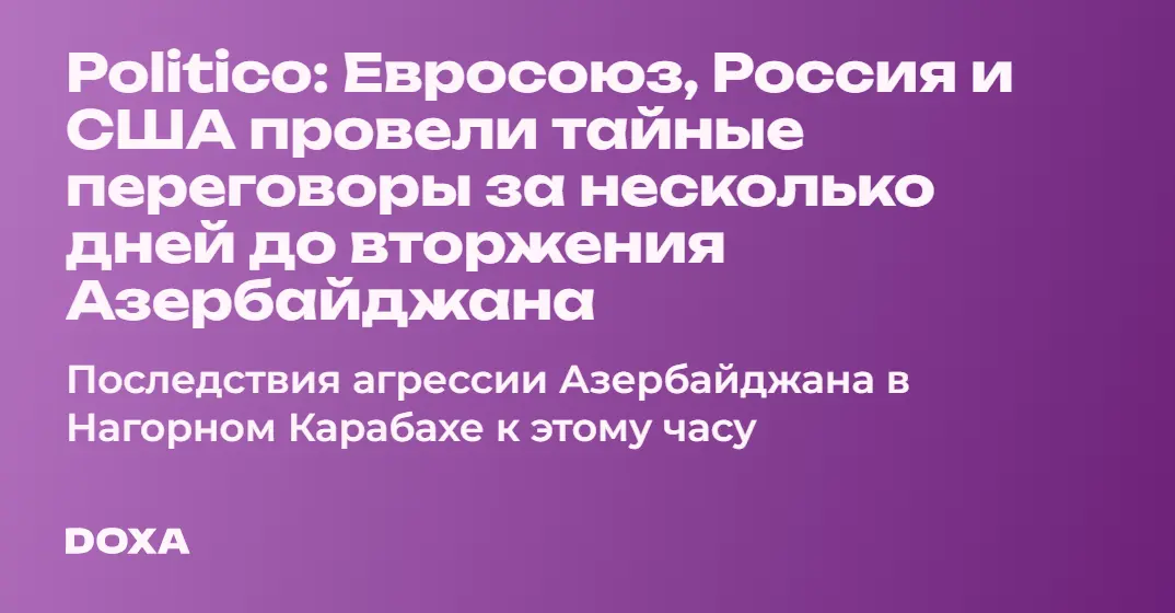 Politico: Евросоюз, Россия и США провели тайные переговоры за несколько дней до вторжения Азербайджана