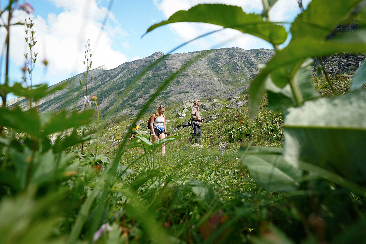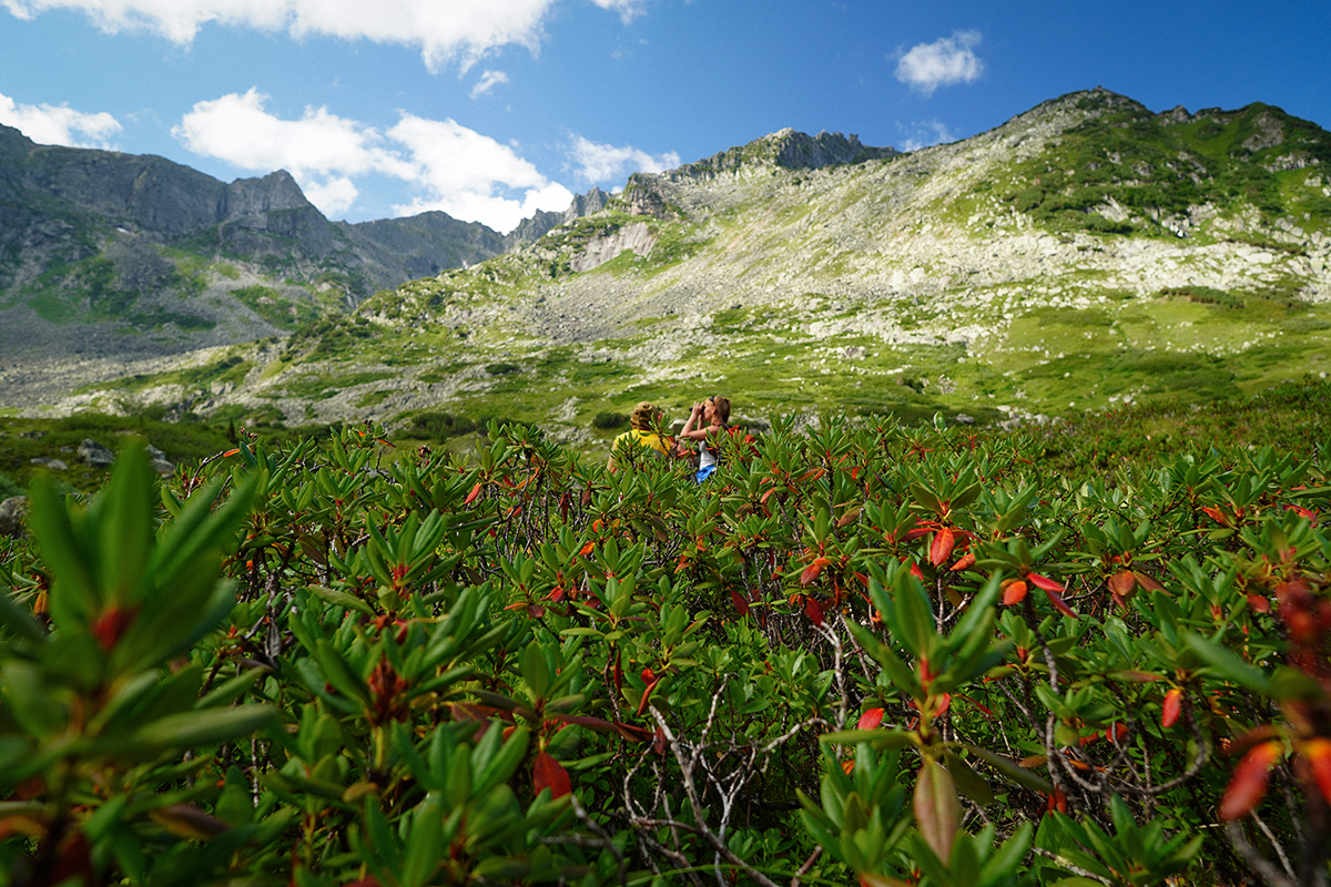 В резиновых сапогах Вадим резво скачет по камням. Мы пытаемся не отставать, но это сложно: вокруг такая красота — то и дело останавливаешься, чтобы сфотографировать, потрогать, понюхать, вдохнуть. В прошлом году здесь на нескольких площадках видели сурков и установили фотоловушки. Задача на сегодня — обследовать площадки и посчитать все черные шапочки. И попутно — других животных, например пищуху (мы ее видели, она невыносимо милая!) и горностая.