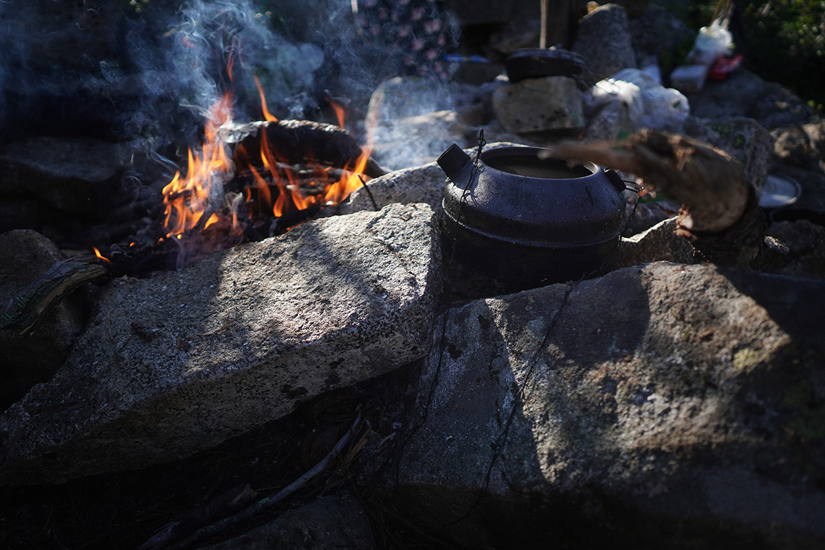 Первым делом разбиваем лагерь. Ставим палатки, складываем в одно место провизию, разводим костер. Пьем чай — и вперед, на учет сурков.
