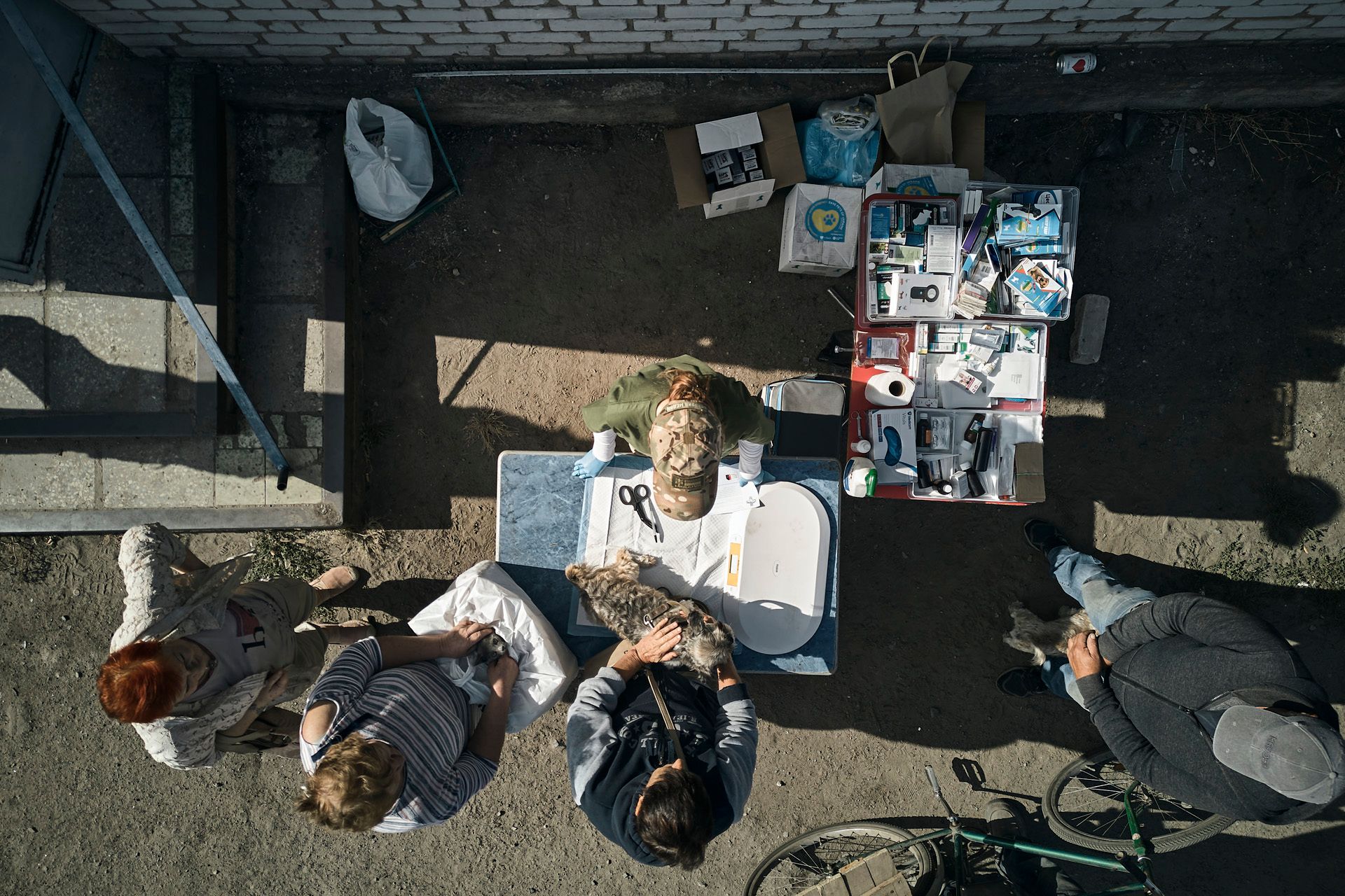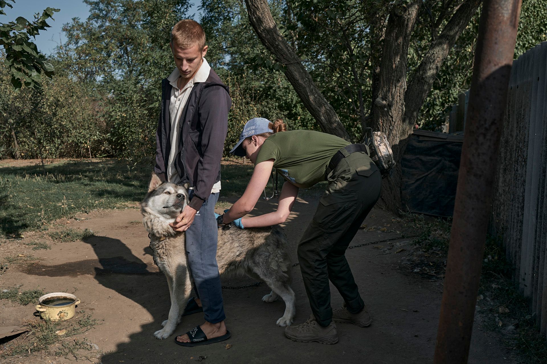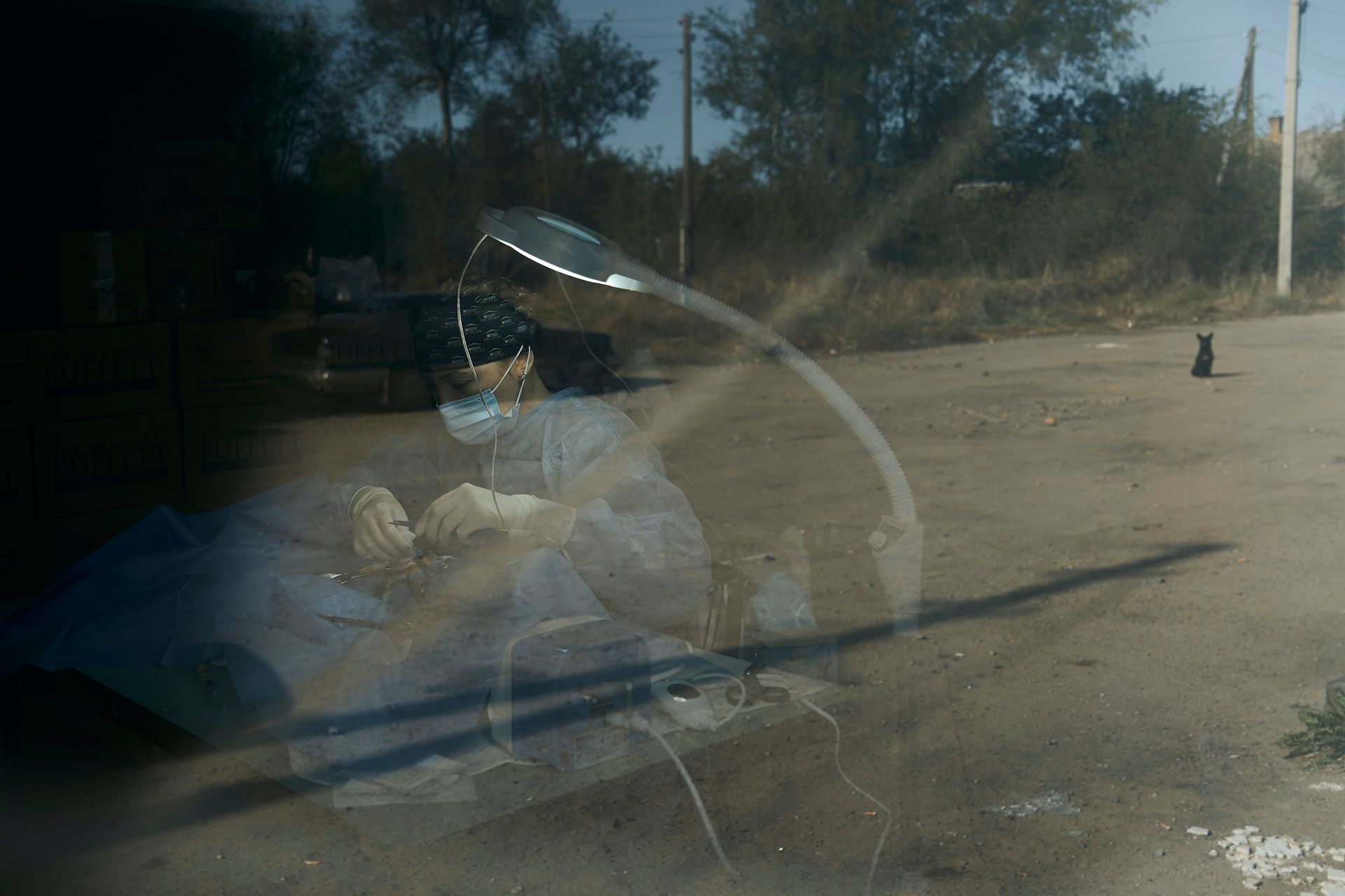 Группа волонтеров-ветеринаров из Киева приехала в село Таврийское в 25 километрах от фронта, чтобы помочь местным жителям с вакцинацией, стерилизацией и лечением животных.