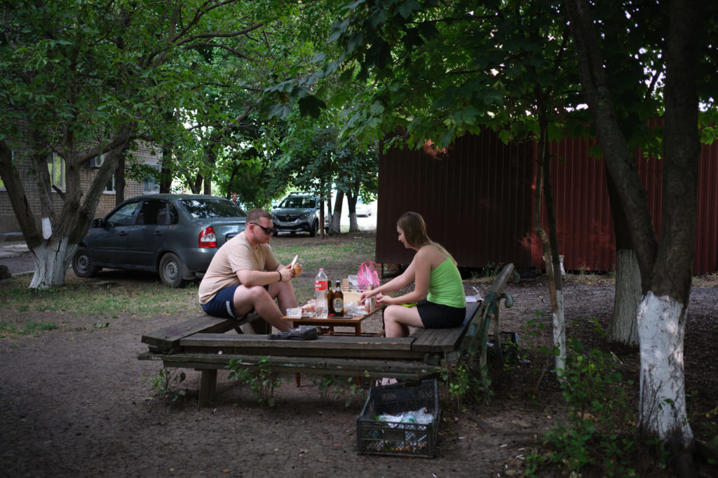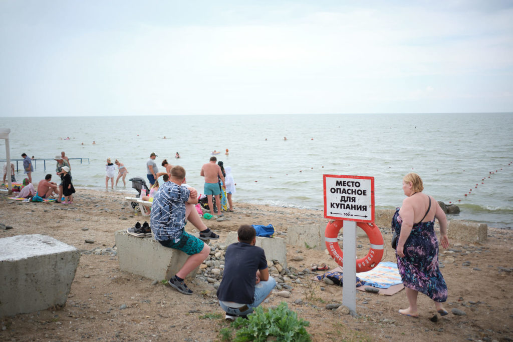 — Самый лучший отдых в Краснодарском крае — это Ейск. Самый лучший отдых в Российской Федерации — это Ейск. Самый лучший отдых в постсоветском пространстве, да и во всём мире — это Ейск, — перечисляет Рустам, торговец сувенирами на центральном пляже города. — А если серьёзно, сейчас тяжело. Люди беднее стали. Война, страх. В прошлом году вообще никого не было, в этом сначала побаивались, потом больше стало. А там посмотрим. Мы в таком мире живём…