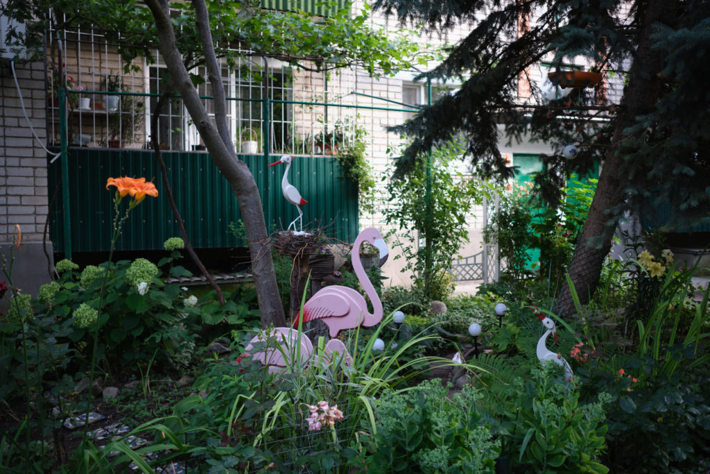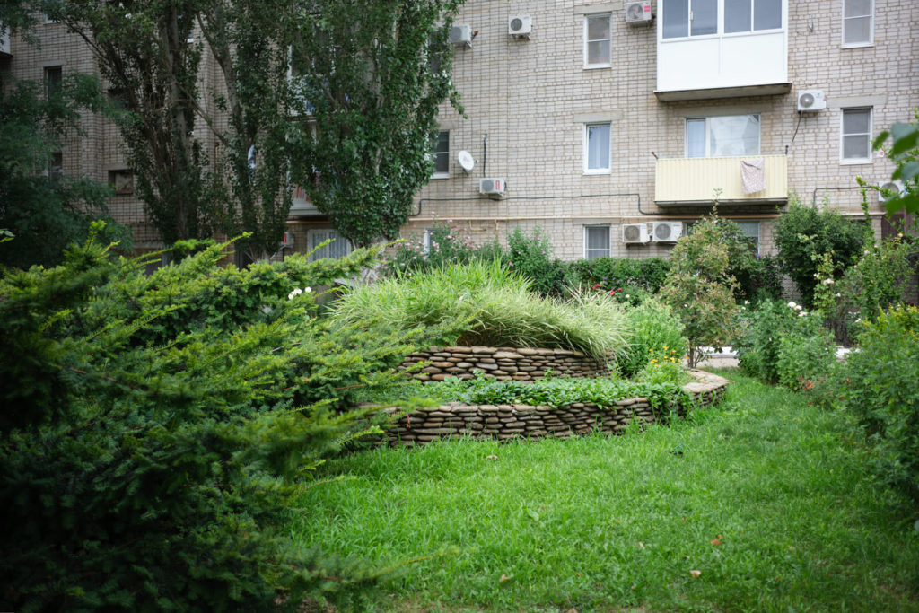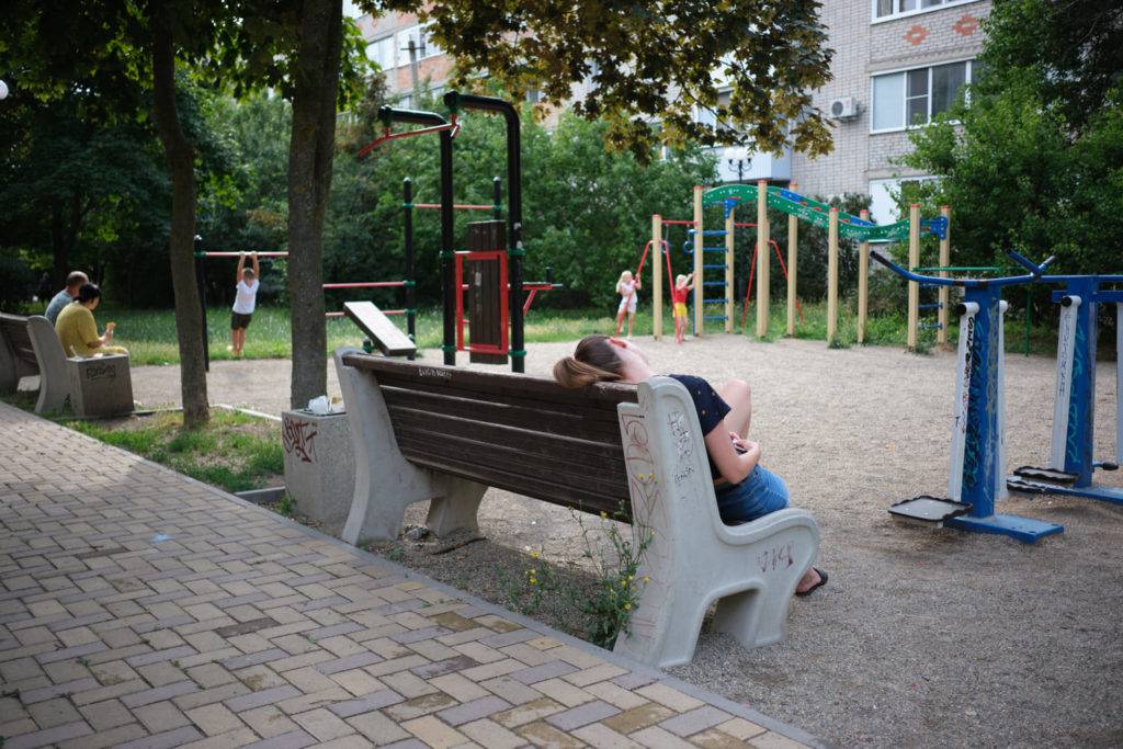 Тихие дворы многоэтажных домов из белого кирпича со всех сторон окружены деревьями и спрятанными под ними лавочками. Ейск хоть и курортный город, но микрорайон Солнечный — всего в квартале от местного автовокзала — совсем не похож на место притяжения тысяч туристов. Атмосфера здесь скорее как в Черёмушках, которые есть почти в каждом городе: старые дома, много зелени и пенсионеров.