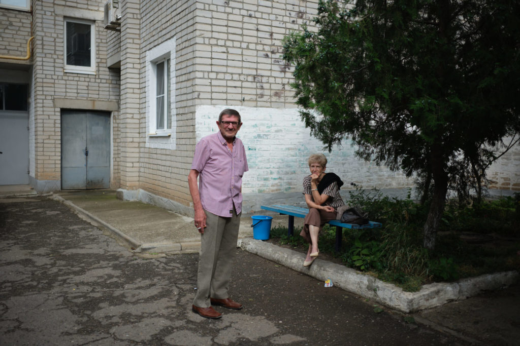 Через несколько домов от пекарни двое пенсионеров сидят на лавочке среди кустов и белья, которое сушится на верёвках прямо на улице. Супруги давно на пенсии, оба инвалиды: инсульт, сердце и давление. В жару им нельзя выходить, поэтому летом на свежем воздухе они бывают только вечером и недолго. В день, когда в дом по соседству врезался истребитель, пенсионеры слышали взрывы, и на этом всё. Говорят, что ничего не поняли.