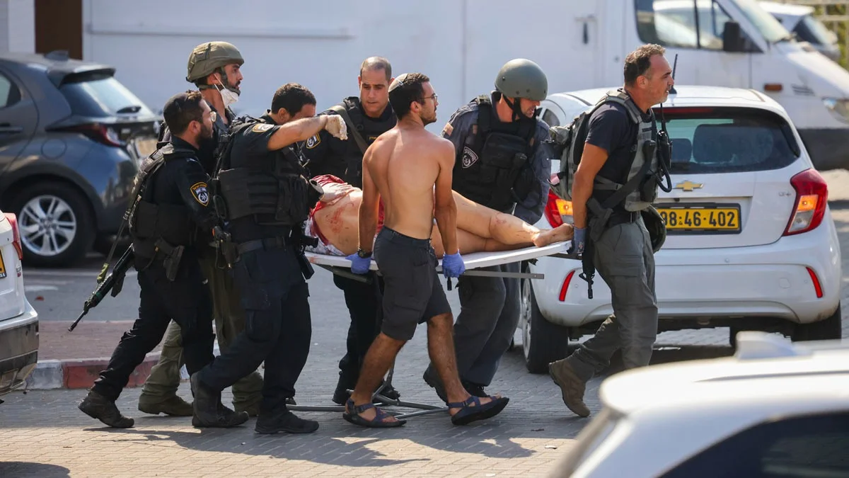 Ашкелон. 7 октября 2023 года. Эвакуация раненой женщины с места попадания ракеты, выпущенной из сектора Газа. Фото: AP / TASS