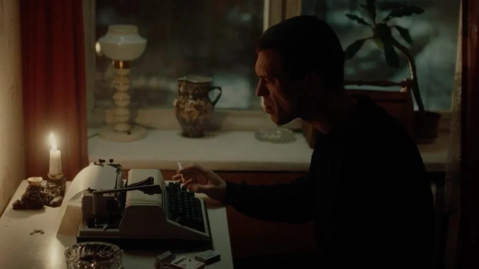 Сигарета, свеча, пишущая машинка, окно. Рыжий бьется в крошечной пустой комнате, словно муха. Ищет ускользающие «ненормированные» рифмы, краски невидимого мира. Бросает в окно скомканные неслучившиеся стихи.