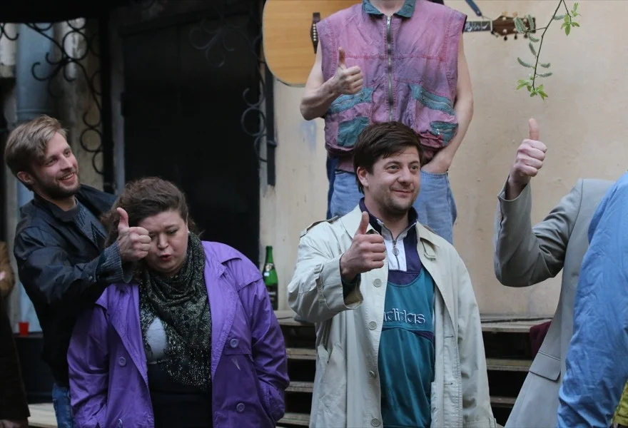 Уже традиционно трагикомическая звонкая — временами слишком звонкая, бенефисная — роль Евгения Ткачука. Самого нелепого и самого несчастного из друзей. Не сложившего своей судьбы поэта и сгоревшего на ветру эпохи фигляра. Гонимого, повязанного долгами. Как многие другие «местные поэты», завидующего прорвавшемуся в высшие орбиты и зарвавшемуся Боре. Почему именно он? И поймавшего в старенькую камеру их редкие моменты снежного счастья и единения в «те баснословные года», когда «нам пиво воздух заменяло».