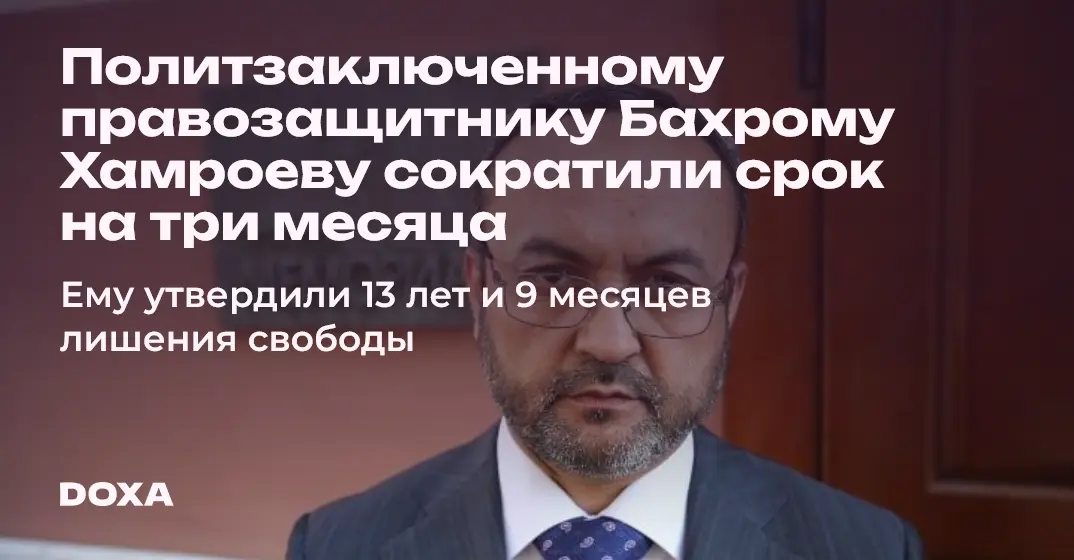 Военный апелляционный суд смягчил приговор правозащитнику Бахрому Хамроеву. Ему утвердили 13 лет и 9 месяцев лишения свободы по делу о «публичных призывах к терроризмуч. 2 ст. 205.2 УК РФ в интернете» и участии в деятельности «террористической организации»ч. 1 ст. 205.5 УК РФ. Изначально Хамроева осудили на 14 лет.