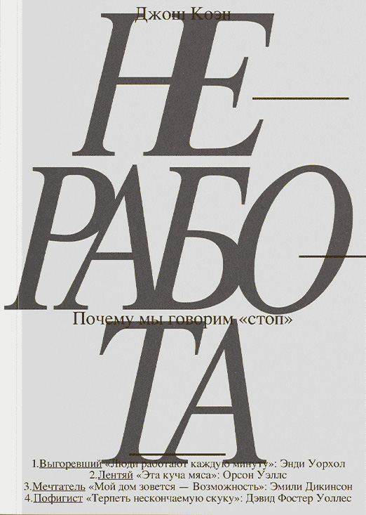 Подобный инфантилизм по меньшей мере вызывает раздражение: будто это так легко, разом все бросить и вернуться к идеалам аристократической праздности. Бесплодные рассуждения по этому поводу заслоняют главное, на чем, собственно, сфокусирован автор «Неработы»: деятельность, как и ее отсутствие, — это головокружительная трудность, над которой стоит думать хотя бы потому, что от этого зависит наше психическое здоровье, а как максимум — мера нашей человечности.