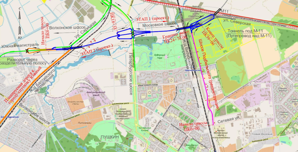 Что нужно знать. В июне Госстройнадзор выдал разрешение на строительство первого участка Южной магистрали — на участке протяженностью около 700 м от Сарицкой улицы до развязки с Петербургским шоссе, в том числе путепровод через железнодорожные пути Балтийского направления.