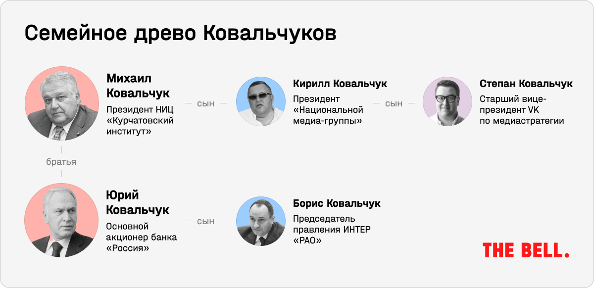 Михаил и Юрий Ковальчуки — питерские друзья Владимира Путина. При этом Юрий Ковальчук имеет самое непосредственное отношение к группе VK: в конце 2021 года миллиардер Алишер Усманов продал контроль в компании тесно связанным с ним «Согазу» и Газпромбанку.
