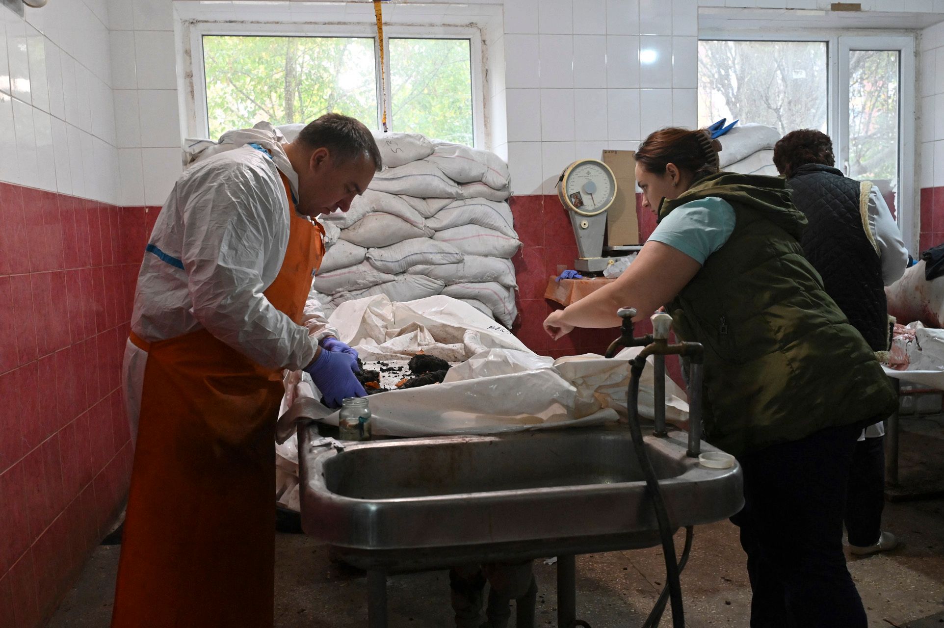 Vyacheslav Madiyevskyy / Укринформ / SIPA / Scanpix / LETA Судмедэксперты передают тела жителей Грозы родственникам для захоронения. 5 октября из-за российского ракетного удара в селе погибли 55 человекVyacheslav Madiyevskyy / Reuters / Scanpix / LETASergey Bobok / AFP / Scanpix / LETA Судмедэксперты осматривают погибшихSergey Bobok / AFP / Scanpix / LETAVyacheslav Madiyevskyy / Укринформ / SIPA / Scanpix / LETA Родственники забирают опознанные тела жертв