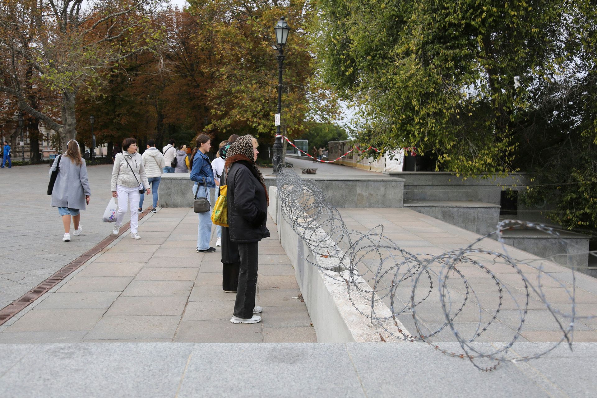 Yulii Zozulia / Укринформ / ddp / Vida Press Сухогрузы Beaver, Ability и DSM Ererton прибыли для загрузки в порт Одессы через временный коридор, контролируемый ВМС УкраиныSvet Jacqueline / ZUMA Press Wire / Scanpix / LETA Выпускной вечер в Одесской морской академииViacheslav Onyshchenko / SOPA Images / LightRocket / Getty Images Протестующие у мэрии Одессы на Думской площади выступают против нецелевого использования бюджетных денег. По их мнению, они должны идти только на нужды ВСУ, а не на второстепенные расходы — например, на ремонт здания суда и покупку новогодних елокViacheslav Onyshchenko / Global Images Ukraine / Getty Images Подростки на скейтбордах у бетонной баррикады на Приморском бульвареMaxym Marusenko / NurPhoto / Shutterstock / Vida Press Памятник дюку де Ришелье, обложенный мешками с пескомViacheslav Onyshchenko / SOPA Images / LightRocket / Getty Images С началом полномасштабного вторжения для горожан закрыли доступ к Потемкинской лестнице и памятнику дюку, который находится напротив нееViacheslav Onyshchenko / SOPA Images / LightRocket / Getty Images Одесситки смотрят на Потемкинскую лестницу на Приморском бульваре. Лестница считается официальным входом в город со стороны моря, это самый известный символ Одессы. Напротив — здание Морского вокзала, пострадавшее после атаки российских дронов в конце сентября