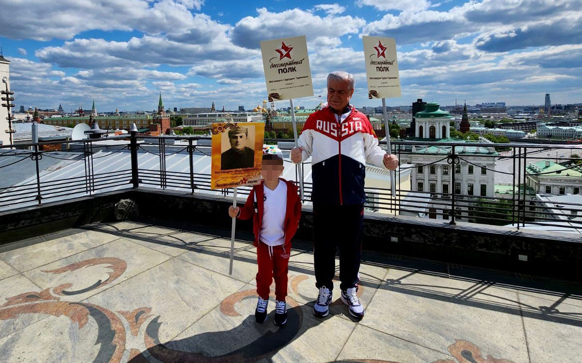День Победы — это «самый главный и святой праздник», как его характеризует сам Омар Муртузалиев, история которого описывается ниже, × для бизнесмена, «мецената», первого вице-президента Федерации спортивной борьбы России Омара Муртузалиева. Каждый год 9 мая он участвует в акции «Бессмертный полк», утверждает он сам × . В этот день Муртузалиев, бывает, надевает красно-белый спортивный костюм с большой надписью Russia, берет два транспаранта с георгиевскими лентами по одному в каждую руку, а третий — с фотографией погибшего на Второй мировой войне родственника — отдает несовершеннолетнему родственнику. С плакатами в руках Муртузалиев и мальчик поднимаются на крышу роскошного дома, в котором они живут рядом с Кремлем, где делают праздничное фото для социальных сетей.