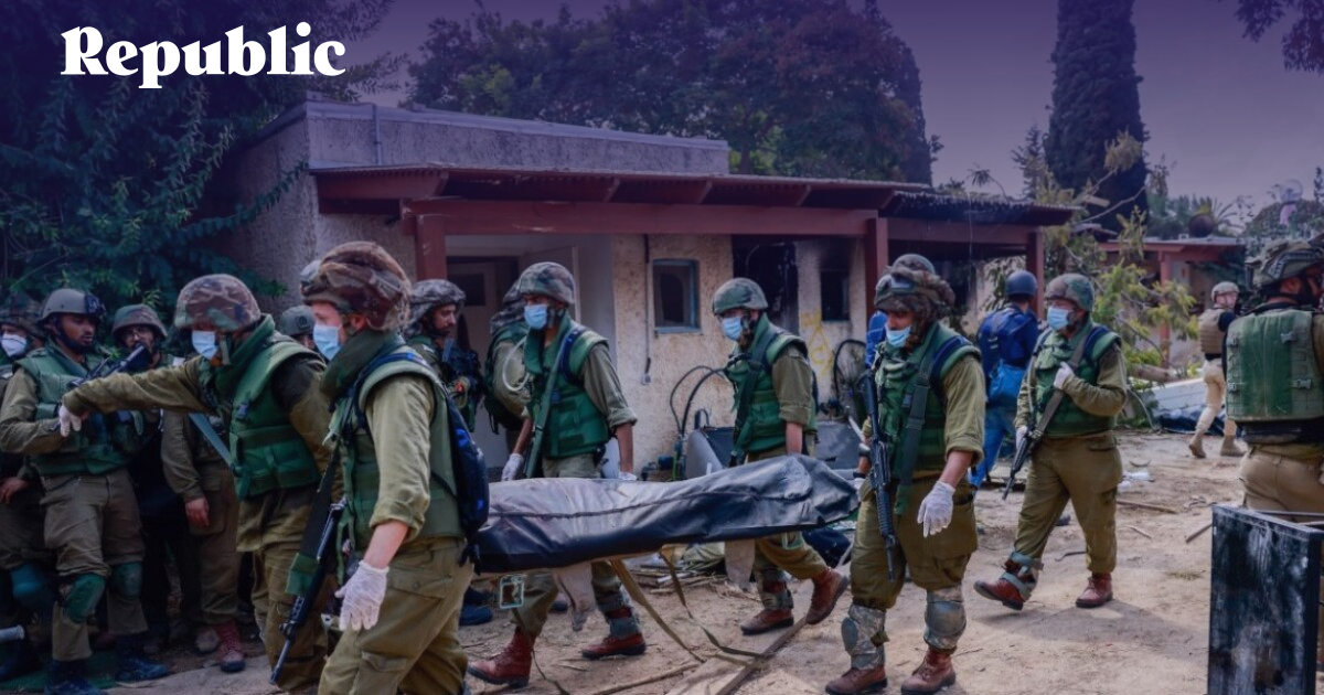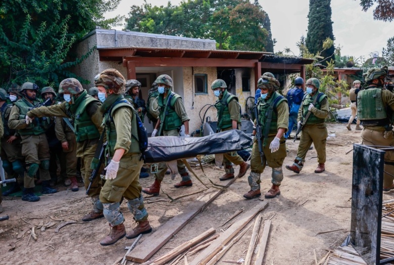 Израильские военные выносят тела погибших в результате атаки ХАМАС