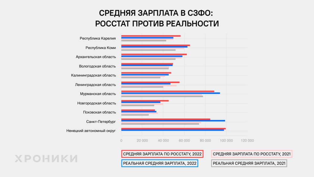 Расчеты «Хроник» совпали с Росстатом и по Мурманской области, и по Петербургу. Суммы получились даже чуть выше, чем у ведомства. Так же было и по результатам 2021 года.
