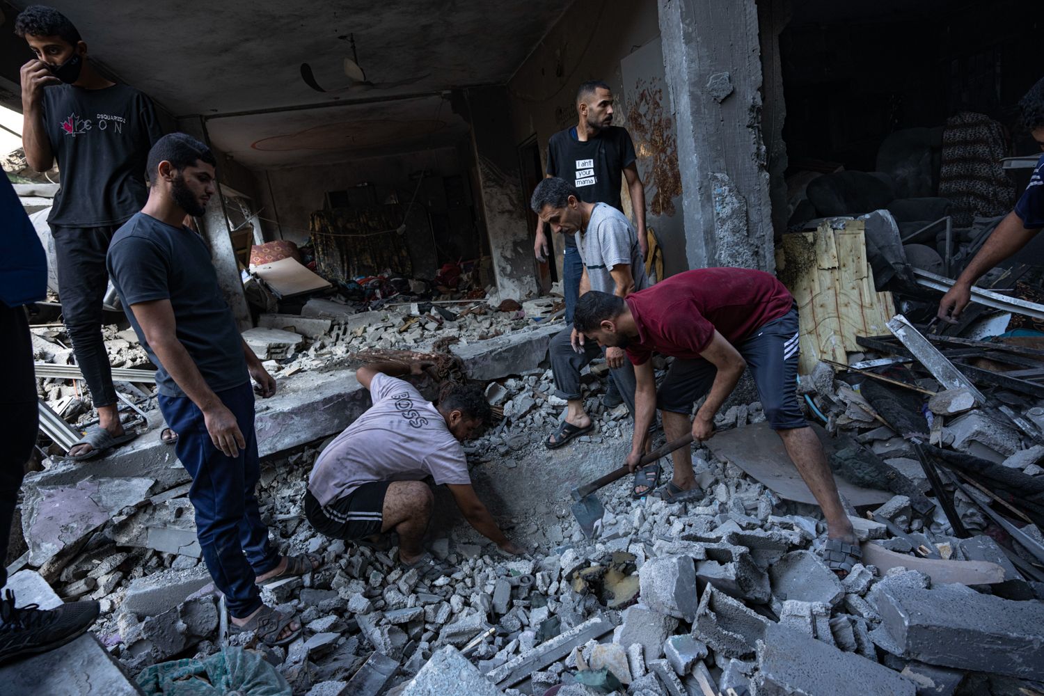 Ibrahahim Hams / AFP / Scanpix / LETA Дым над Газой после израильского авиаудара 12 октября 2023 года. Бомбардировки сектора Газа начались вслед за нападением боевиков ХАМАС на Израиль 7 октября. ЦАХАЛ утверждает, что целями ударов становятся объекты, используемые террористами. ХАМАС размещает свои военные объекты в непосредственной близости от жилых домов — чтобы израильским военным было сложнее их бомбить.Hatem Moussa / AP / Scanpix / LETA Разрушенные здания в Джабалии на севере сектора Газа, 11 октября 2023 года. Этот город считается одной из цитаделей ХАМАС.Ismael Mohamad / UPI / Shutterstock / Vida Press Жители Газы несут женщину, пострадавшую в результате обстрела. 12 октября 2023 годаSaid Khatib / AFP / Scanpix / LETA Дети, пострадавшие после обстрела города Рафах на юге сектора Газа, 12 октября 2023 года. По данным ООН, из-за израильских авиаударов более 338 тысяч палестинцев были вынуждены покинуть свои дома.Hatem Ali / AP / Scanpix / LETA Палестинцы эвакуируют раненых после авиаудара по Рафаху на границе с Египтом. 12 октября 2023 годаHatem Ali / AP / Scanpix / LETA Жители Рафаха ищут выживших после израильского авиаудара. 12 октября 2023 годаWang Dongzhen / Xinhua / ZUMA Press / Scanpix / LETA Поиск выживших под обломками разрушенного здания в городе Хан-Юнис на юге сектора Газа. 11 октября 2023 годаSaid Khatib / AFP / Scanpix / LETA Спасатели и местные жители вытаскивают палестинца из-под обломков дома после авиаудара по Рафахе. 13 октября 2023 годаFatima Shbair / AP / Scanpix / LETA Разбор завалов и поиск выживших в лагере беженцев Аль-Шати, расположенном на берегу Средиземного моря в северной части сектора Газа. 12 октября 2023 годаAshraf Amra / Anadolu / Vida Press Аль-Шати. 12 октября 2023 годаMohammed Salem / Reuters / Scanpix / LETA Палестинец с телом ребенка, погибшего при израильском обстреле Газы. 12 октября 2023 годаAli Mahmoud / AP / Scanpix / LETA Раненый ребенок в больнице Аль-Шифа, крупнейшем госпитале сектора Газа. 11 октября 2023 годаAli Mahmoud / AP / Scanpix / LETA Раненые дети в больнице Аль-Шифа. 11 октября 2023 годаMohammed Talatene / dpa / Scanpix / LETA Палестинец c телом ребенка, погибшего во время авиаудара по Газе. 12 октября 2023 годаHaitham Imad / EPA / Scanpix / LETA Женщина оплакивает свою погибшую дочь в госпитале Газы, 9 октября 2023 года. ЦАХАЛ заявил, что в ночь на 9 октября нанес удары по 500 целям в секторе Газа в ответ на нападение боевиков ХАМАС. Палестинские власти сообщали, что на тот момент в ходе обстрелов погибли более 500 жителей Газы, в том числе 91 ребенок.Mahmud Hams / AFP / Scanpix / LETA Морг больницы Аль-Шифа в Газе. 12 октября 2023 годаMohammed Abed / AFP / Scanpix / LETA Палестинцы ищут погибших родственников возле морга больницы Аль-Шифа в городе Газа. 12 октября 2023 годаFatima Shbair / AP / Scanpix / LETA Последствия авиаударов по Газе, 11 октября 2023 года. Помимо военных объектов, Армия обороны Израиля атакует дома, в которых живут высокопоставленные члены ХАМАС.Said Khatib / AFP / Scanpix / LETA Палестинец со своими детьми на развалинах дома в Рафахе. 12 октября 2023 годаMohammed Salem / Reuters / Scanpix / LETA Палестинский подросток в убежище в больнице Аль-Шифа. 12 октября 2023 годаMohammed Abed / AFP / Scanpix / LETA Палестинские подростки запасаются водой в Газе. Израильские власти заявили, что не будут оказывать гуманитарную помощь палестинцам, пока боевики ХАМАС не отпустят заложников, захваченных 7 октября во время нападения на Израиль. Из-за блокады в сектор Газа прекращена подача воды, электричества и топлива.Abed Rahim Khatib / dpa / Scanpix / LETA Палестинцы покидают свои дома, чтобы спастись от израильских авиаударов. В секторе Газа живут около двух миллионов человек. П