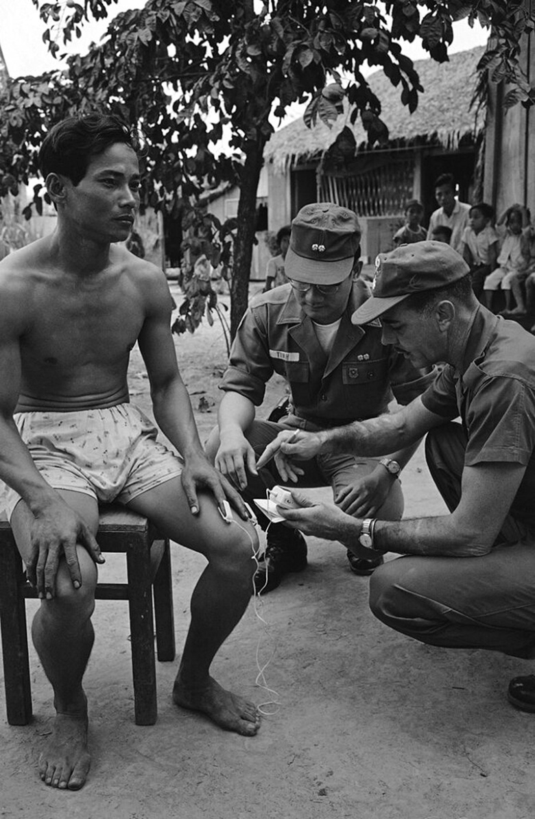 Допрос пленного партизана с помощью переносного полиграфа («детектора лжи»). Вьетнам, 1964