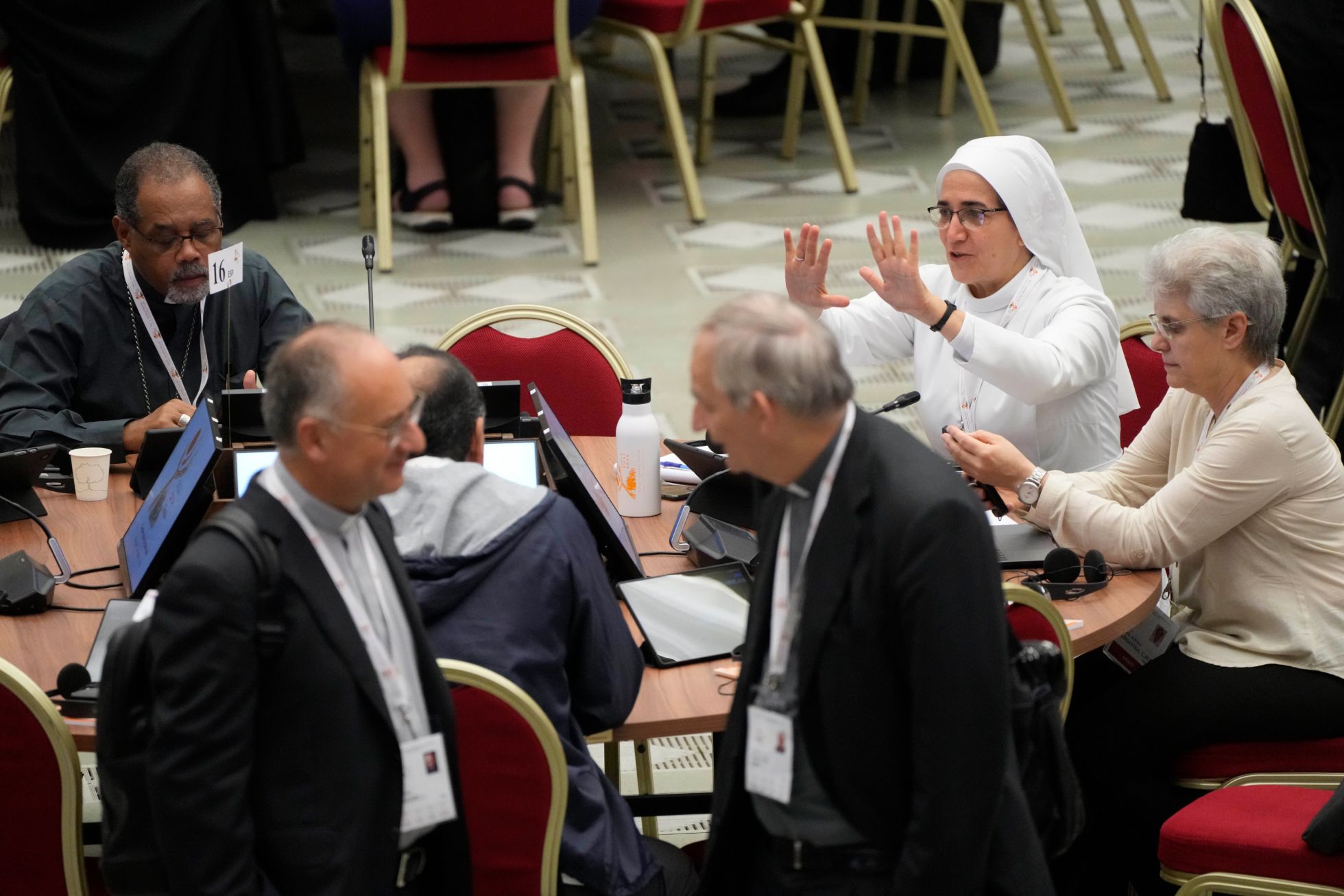 В конце дня один из участников каждого стола выступает перед всеми делегатами ассамблеи с трехминутным сообщением о теме дискуссии и ее результатах — эту информацию передают в секретариат Синода.