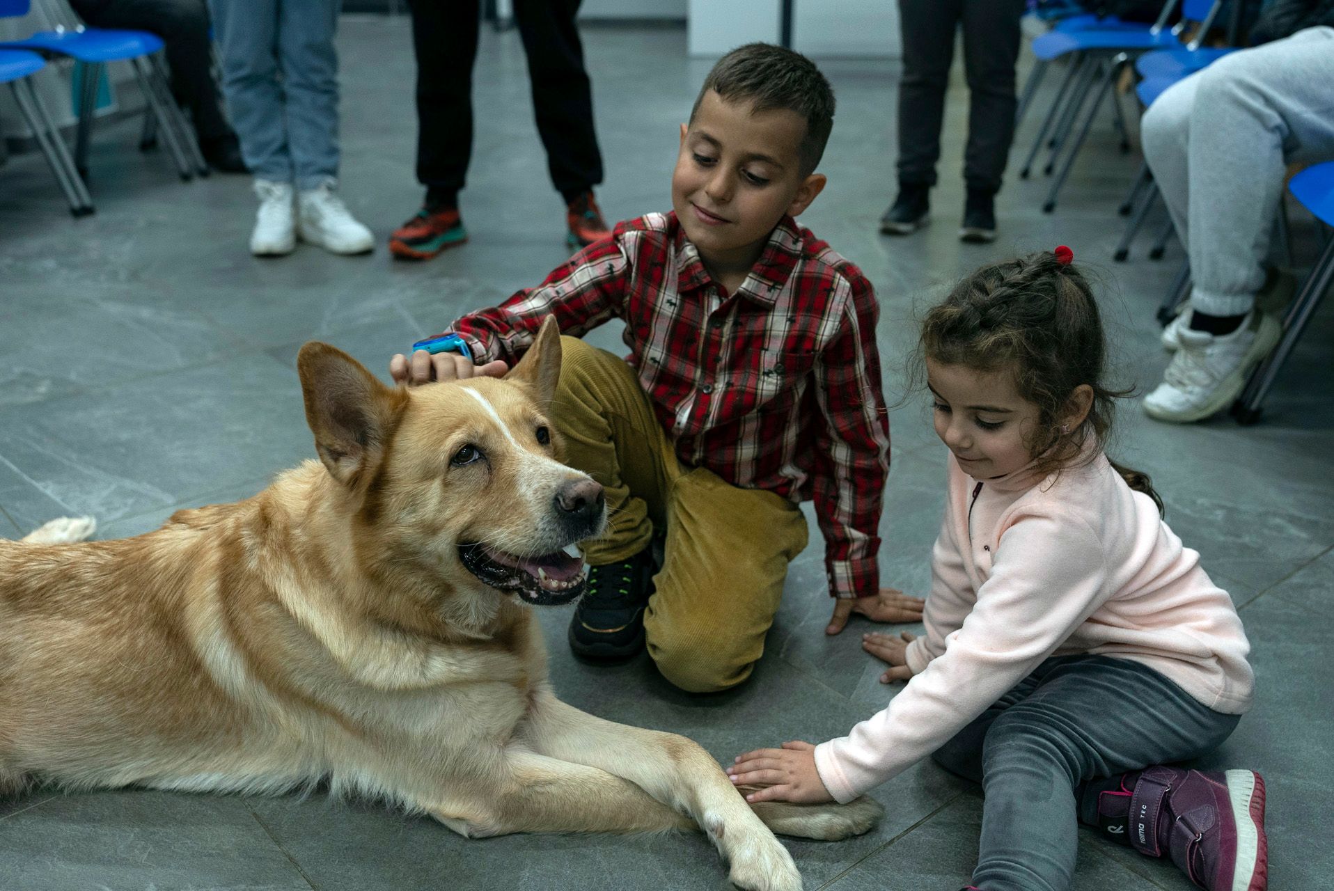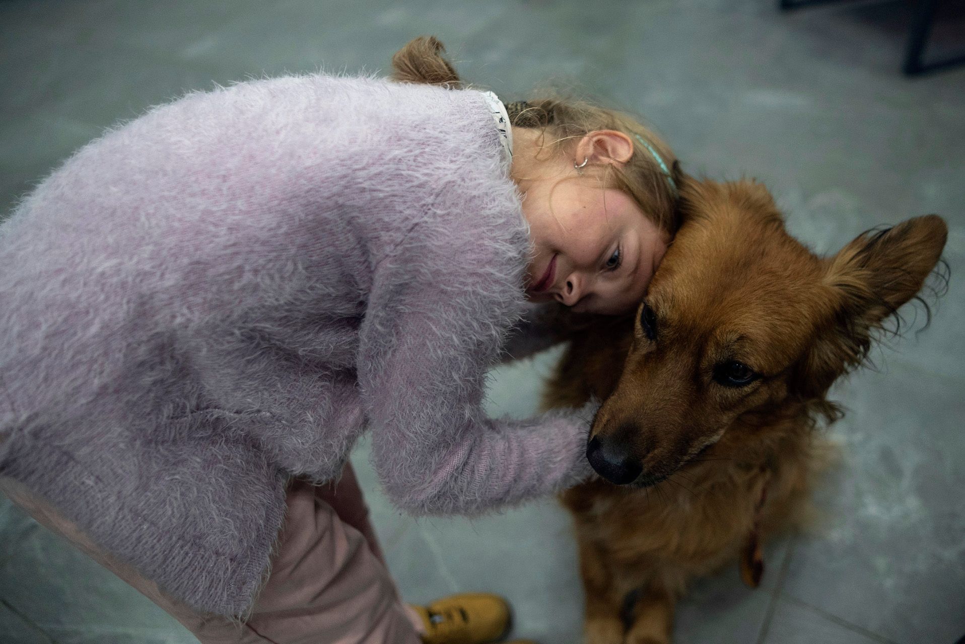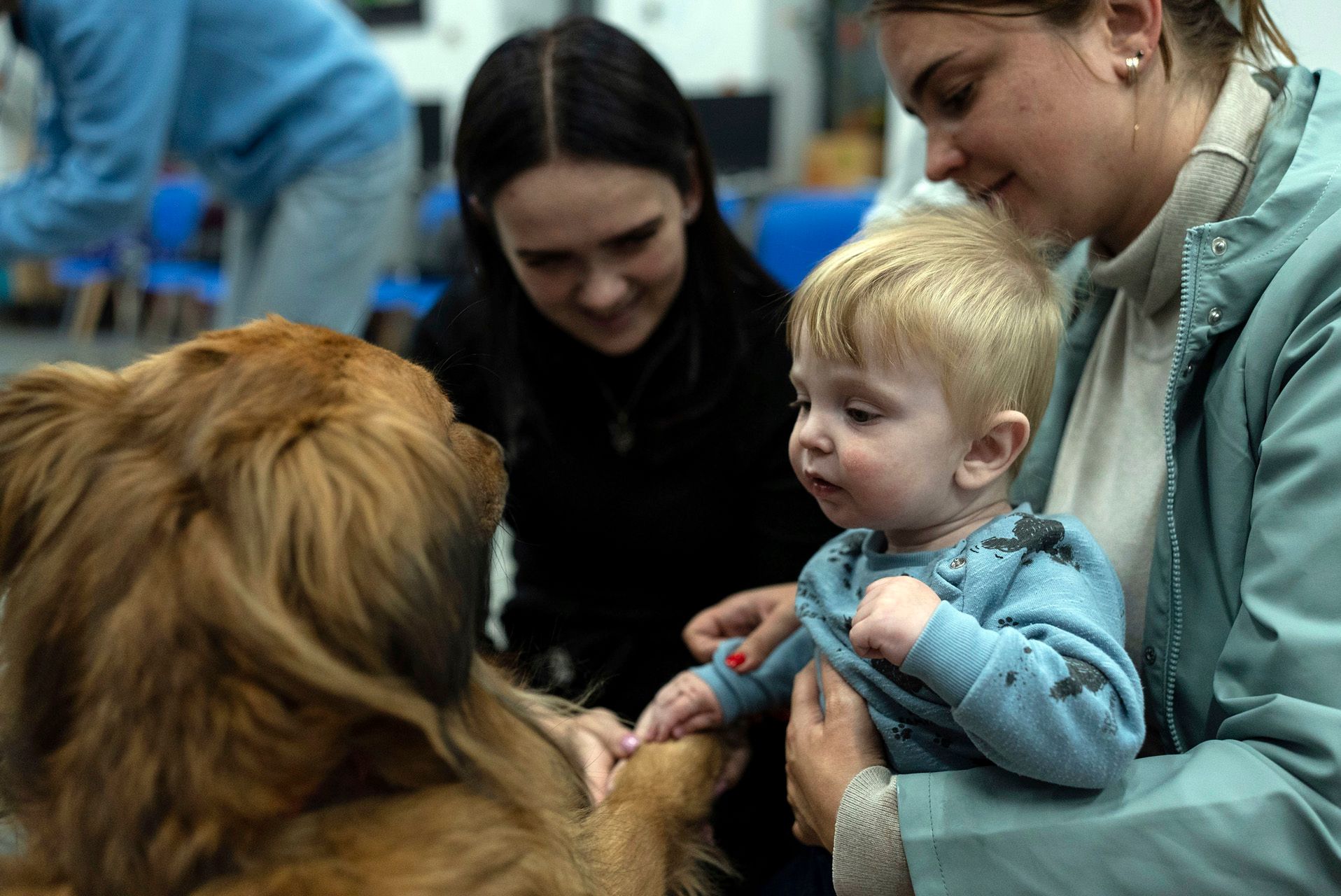 В Киеве для детей бойцов ВСУ проводят сеансы канистерапии. Собаки, прошедшие специальное обучение, помогают им справляться с травмами и стрессом