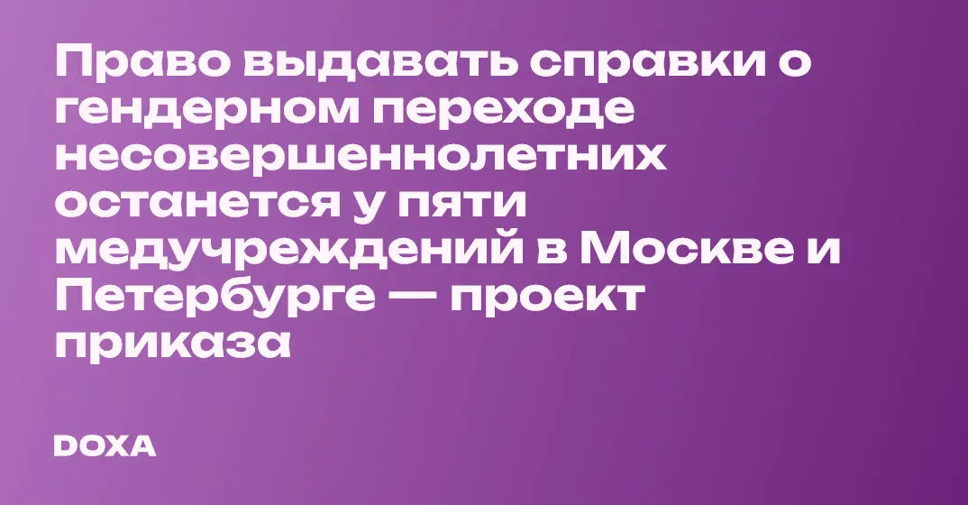 Право выдавать справки о гендерном переходе несовершеннолетних останется у пяти медучреждений в Москве и Петербурге — проект приказа