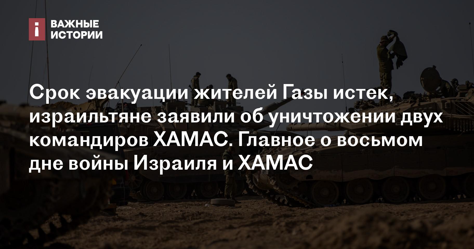 Срок эвакуации жителей Газы истек, израильтяне заявили об уничтожении двух командиров ХАМАС. Главное о восьмом дне войны Израиля и ХАМАС