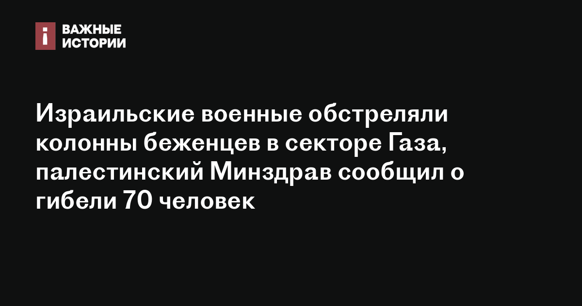 Израильские военные обстреляли колонны беженцев в секторе Газа, палестинский Минздрав сообщил о гибели 70 человек
