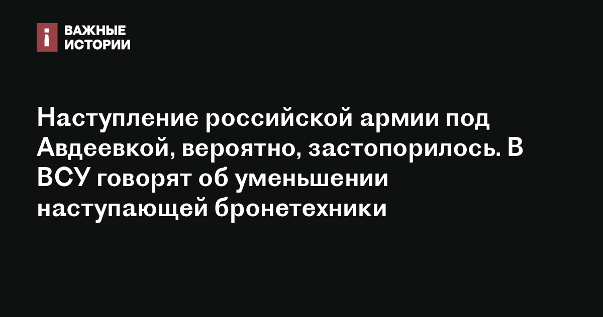 Наступление российской армии под Авдеевкой, вероятно, застопорилось. В ВСУ говорят об уменьшении наступающей бронетехники