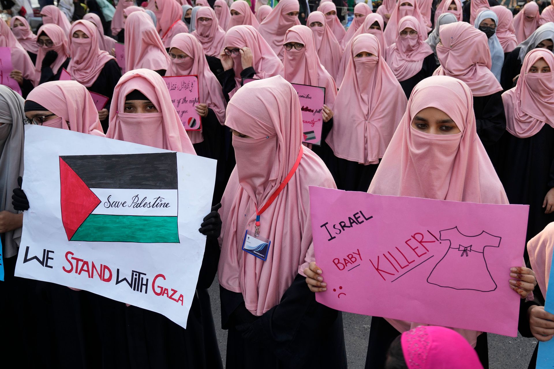 Khaled Abdullah / Reuters / Scanpix / LETA Митинг в знак протеста против авиаударов Израиля по сектору Газа в столице Йемена Сане, 13 октября 2023 года. Йеменские повстанцы-хуситы 10 октября заявили, что готовы присоединиться к войне ХАМАС с Израилем, если США станут участником конфликта, сообщает турецкое информационное агентство «Анадолу». «Мы находимся в полной координации с нашими братьями по оси сопротивления», — заявил лидер группировки Абдул-Малик аль-ХусиAhmad Al-Rubaye / AFP / Scanpix / LETA Протестующие сжигают флаги Израиля во время демонстрации на площади Тахрир в иракском Багдаде, 13 октября 2023 года. Премьер-министр Ирака Мухаммед ас-Судани на следующий день после атаки ХАМАС на Израиль провел переговоры с руководством нескольких арабских стран о поиске путей для деэскалации палестино-израильского конфликта. «Позиция арабских стран очевидна и заключается в поддержке палестинского дела и законных прав палестинского народа», — сказал РИА Новости пресс-секретарь иракского премьера Хишам ар-РукабиK.M. Chaudary / AP / Scanpix / LETA Сторонницы религиозной партии «Джамаат-и-Ислами» («Исламский блок») несут плакаты, на которых изображены флаг Палестины и лозунг «Израиль — убийца детей», во время протеста против авиаударов Израиля по сектору Газа. Лахор, Пакистан, 13 октября 2023 года. Протестующие скандировали лозунги «От суши до моря Палестина будет свободной» и «Поддержите Палестину», сообщает The Times of India. Исполняющий обязанности премьер-министра Пакистана Анваар-уль-Хак Какар 10 октября заявил, что мир на Ближнем Востоке зависит от решения вопроса «двух государств для двух народов». Какар призвал к «сдержанности» и отметил, что эскалация насилия на Ближнем Востоке вновь подчеркивает необходимость решения палестинского вопросаK.M. Chaudary / AP / Scanpix / LETA Сторонницы религиозной партии «Джамаат-и-Ислами» в Лахоре держат в руках плакаты с надписями «Смерть Израилю» и «Палестина очень скоро станет свободной». Выступая перед протестующими, глава партии Сираджул Хак раскритиковал США и европейские страны за поддержку антипалестинской политики Израиля. Хак призвал мусульманские страны объединиться и принять участие в судьбе Палестины. «Поднять голос в защиту палестинцев — это обязанность мусульман и часть их веры», — приводит слова Хака The Times of IndiaNic Bothma / Reuters / Scanpix / LETA Марш в поддержку Палестины в южноафриканском Кейптауне, 13 октября 2023 года. В руках митингующих — палестинские флаги и плакат с лозунгом «Спасите Газу». Президент Южной Африки Сирил Рамафоса 12 октября заявил, что его страна готова помочь в урегулировании палестино-израильского конфликта. Рамафоса выразил соболезнования всем жертвам конфликта, осудил «зверства, совершаемые против гражданского населения» и призвал к немедленному открытию гуманитарных коридоров для жителей сектора Газа. Он также обратился к международному сообществу и призвал ускорить достижение прочного мира, который приведет к созданию «жизнеспособного» палестинского государства в пределах границ 1967 годаTaidgh Barron / ZUMA Press Wire / Scanpix / LETA Исповедующие ислам жители Японии и их сторонники на акции солидарности с Палестиной возле посольства Израиля. Министр иностранных дел Японии Ёко Камикава 13 октября созвонилась с министром иностранных дел Палестины Риядом аль-Малики (правительство Палестины не контролирует ХАМАС). Во время беседы Ками