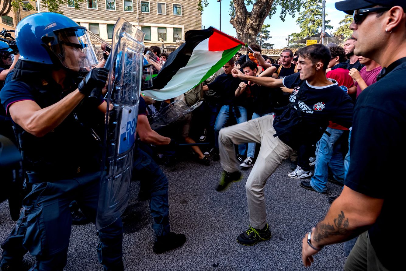 Stefano Montesi / Corbis / Getty Images Столкновение сотрудников полиции Рима с участниками марша студентов университета Ла Сапиенца в поддержку Палестины и против осады сектора Газа. Демонстрация палестинских студентов прошла 13 октября