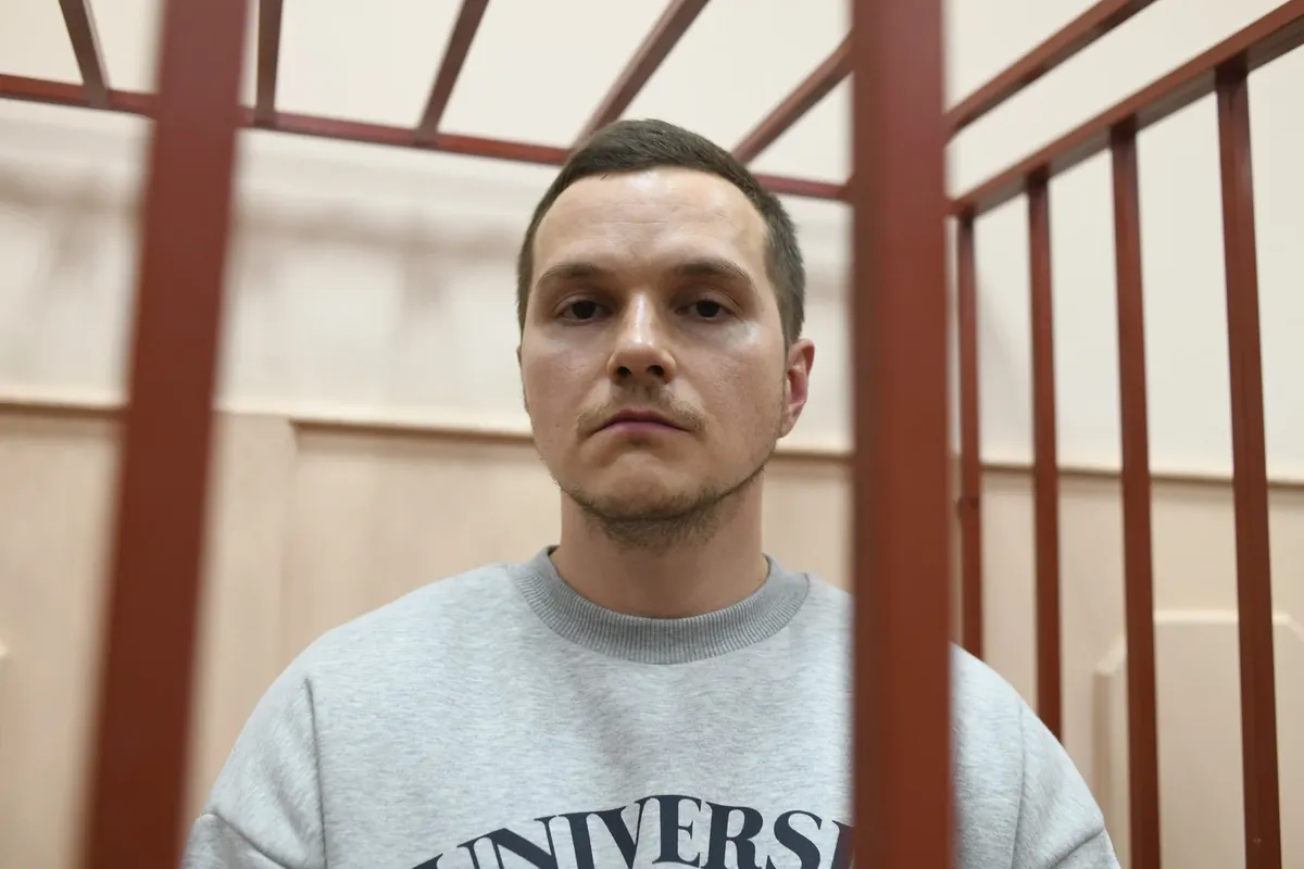 Липцера быстро заводят в клетку. Он смотрит по сторонам, слышу рядом: «Леша, с тобой все рядом». Он моргает, кивает кому-то. Судья снова зачитывает личные данные.У Липцера дочь 2021 года рождения.