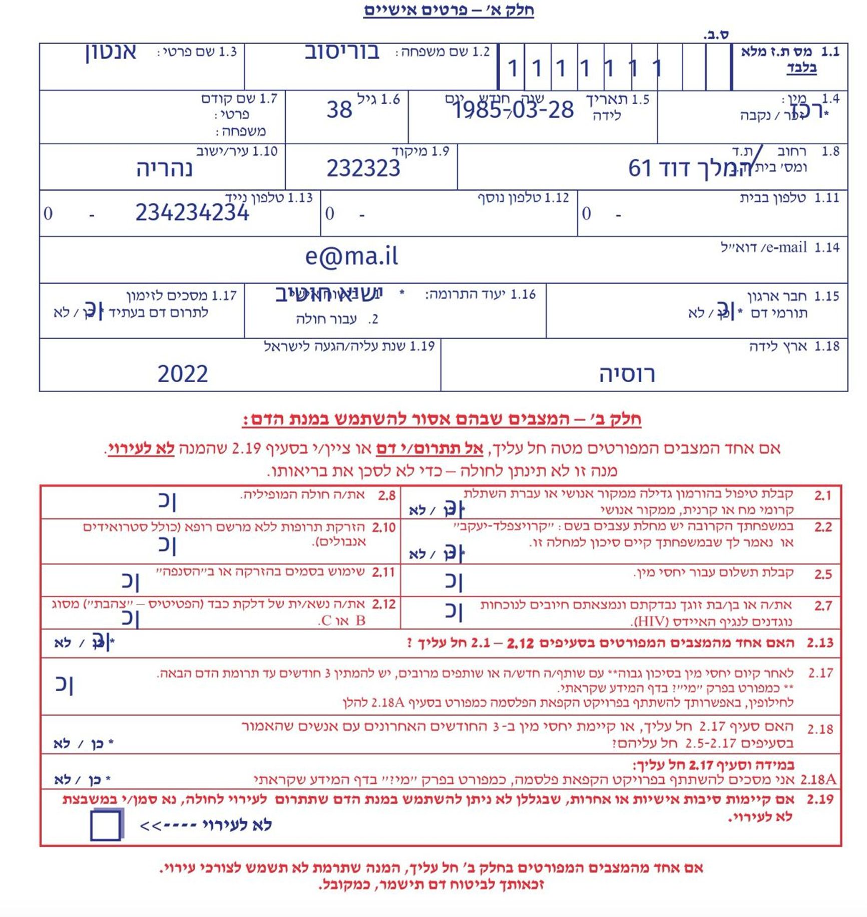 Антону Борисову 38 лет, он айтишник. Переехал в Израиль в июле 2022 года. После нападения ХАМАС на Израиль Антон, как и подавляющее большинство израильтян, пошел сдавать кровь, чтобы помочь раненым. Пока он стоял в очереди на пункте МДА, заметил, как много времени люди тратят на заполнение анкеты по сдаче крови. Он вернулся домой и стал думать, как можно ускорить этот процесс.