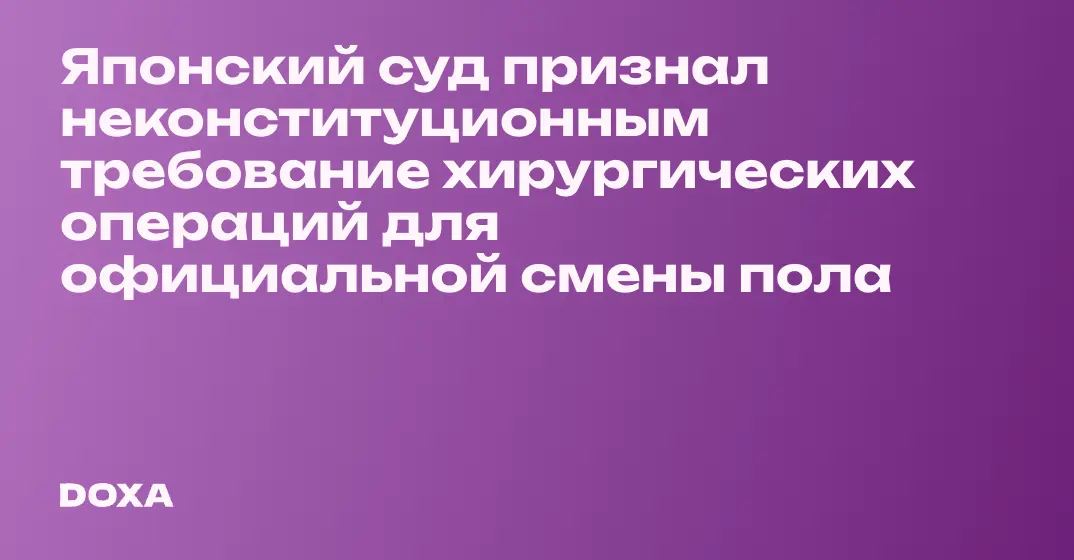 Суд в Японии постановил, что требование хирургической операции для официальной смены пола является неконституционным. Это решение было вынесено в пользу трансгендерного мужчины Гена Судзуки, который подал запрос на смену пола в 2021 году. Семейный суд в префектуре Сидзуока согласился с тем, что требование операции по смене пола является необоснованным и негуманным.