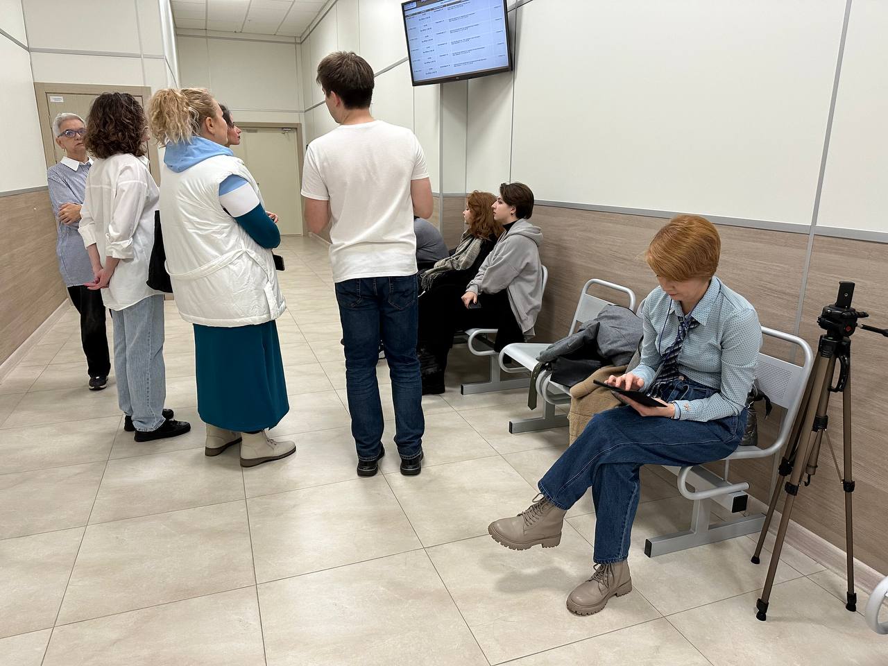 Заседание должно начаться в 10:00 на четвертом этаже. Там — возле кабинета 4-01 — уже собрались около 15 человек разного возраста, включая супруга осужденной Алмаза Гатина, ее адвокатов, журналистов и небольшой группы поддержки. Пока они ждут начала процесса, судебные приставы по очереди входят в зал. Некоторые из них в маске.