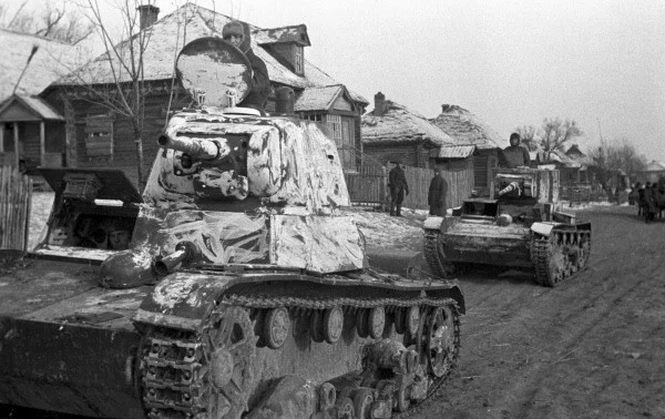 Отступающие танкисты бросают танки. Командир партизанского отряда, белорусский писатель Алексей Карпюк, живший в июне 41-го в деревне у шоссе Белосток–Волковыск–Слоним, вспоминал: «На шоссе оставались советские танки — целенькие, покрашенные свежей краской, с исправными моторами, пулеметами и пушками». Танкисты без танков отступают вместе с пехотой. Связи в войсках нет. Управление потеряно. На дорогах толпы людей.